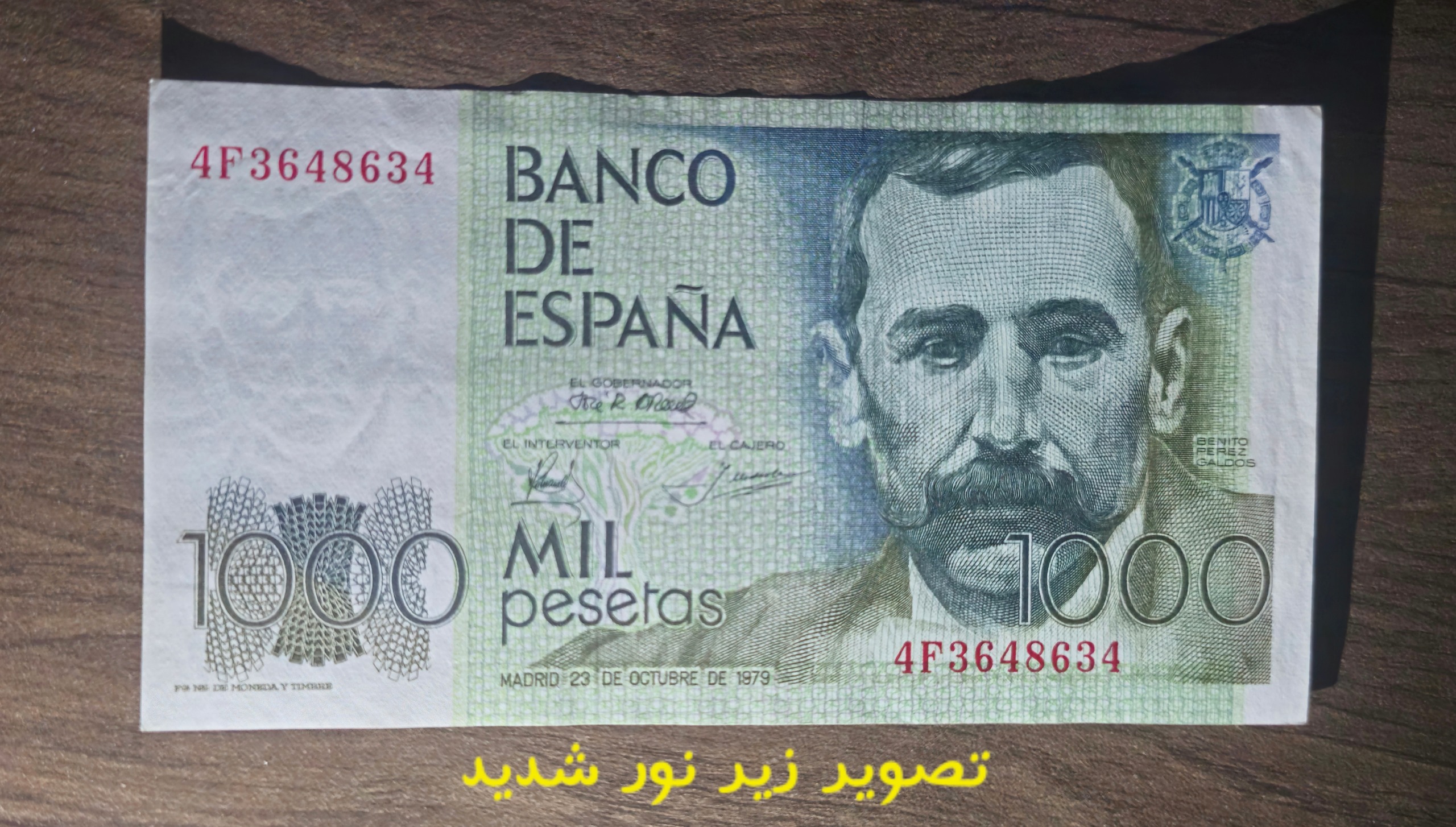 این جمله بخشی از آثار ادبی بنیتو پرز گالدوس است و با چشم انداز طبیعی اسکناس، ارزش فرهنگی و معنایی آن را دوچندان می کند.