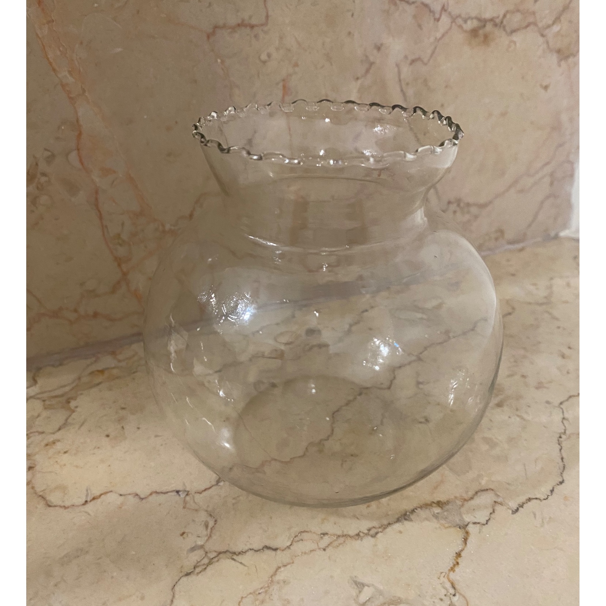 گلدان شیشه ای گرد تنگ ماهی کوچک قدیمی آنتیک