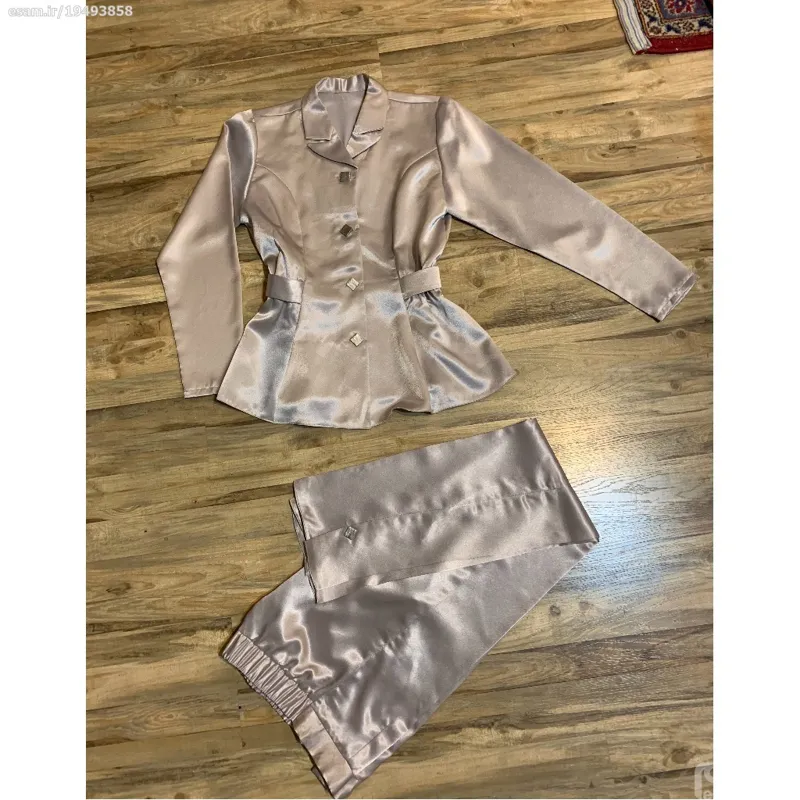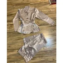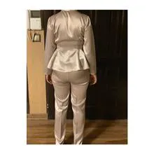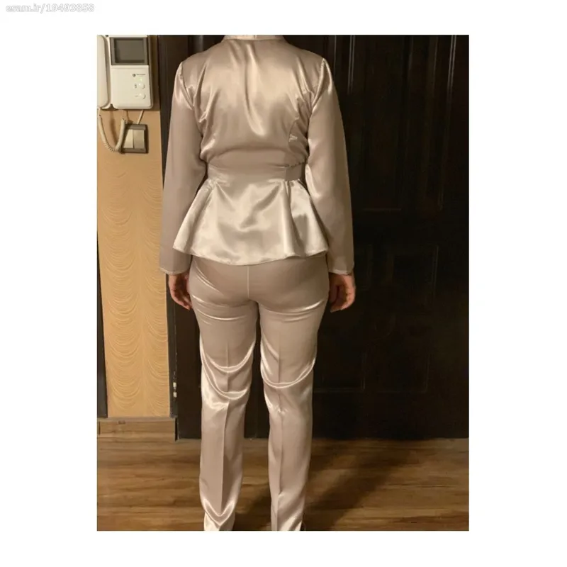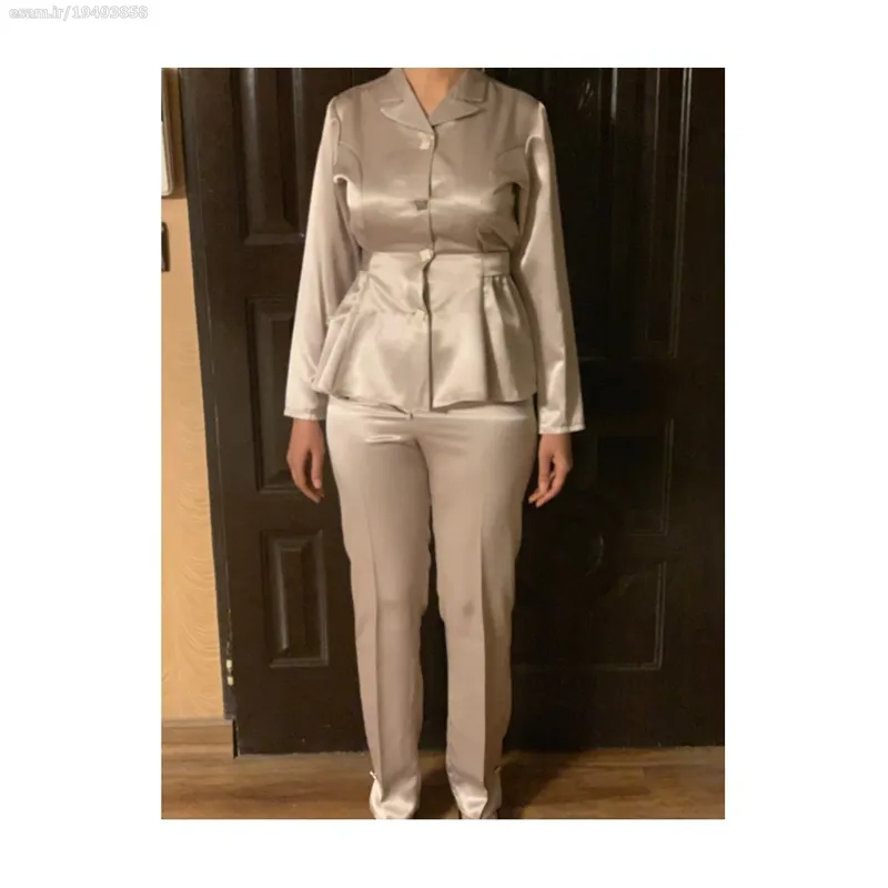 کت و شلوار مجلسی ساتن نقره ای نو زنانه سایز 38