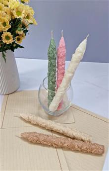 شمعهای دست ساز قلمی ،قابل سفارش در رنگهای مختلف،قد قلمی ها 20 سانته و قطر دوسانت و تقریبا دوساعت زمان سوخت داره