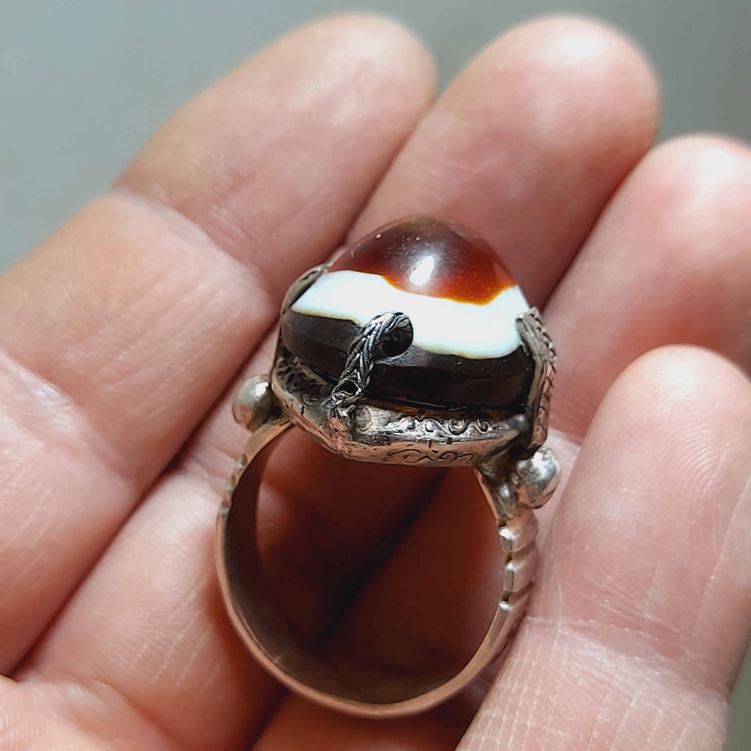 انگشتر نقره با سنگ زیبای 3 پوست بینظر رکاب ساخت استاد احمد بروجردی کار خاص و زیبا