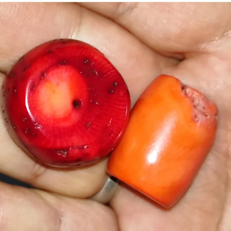 دو عدد مهره مرجان طبیعی در دو رنگ صورتی و قرمز