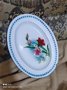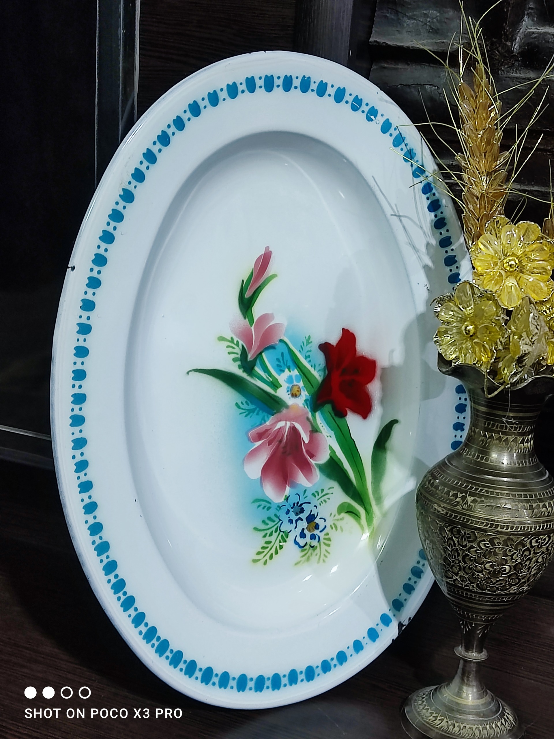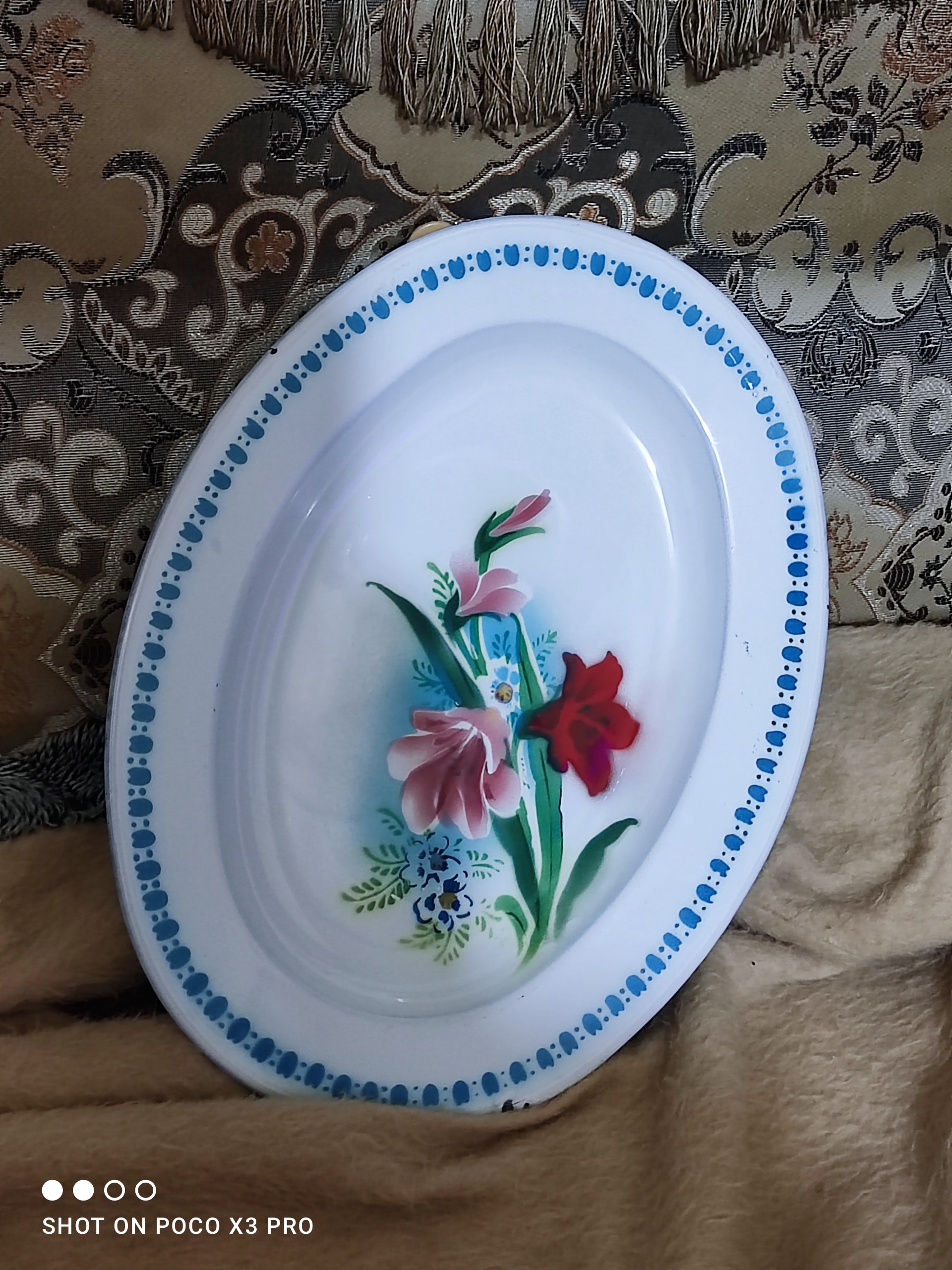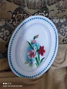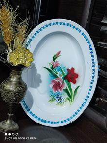 سینی لعابی قدیمی در حد نو زیبا و محکم مطابق تصاویر طولش 35 سانته و عرضشم 27 سانت بسیار محکم و جوندار