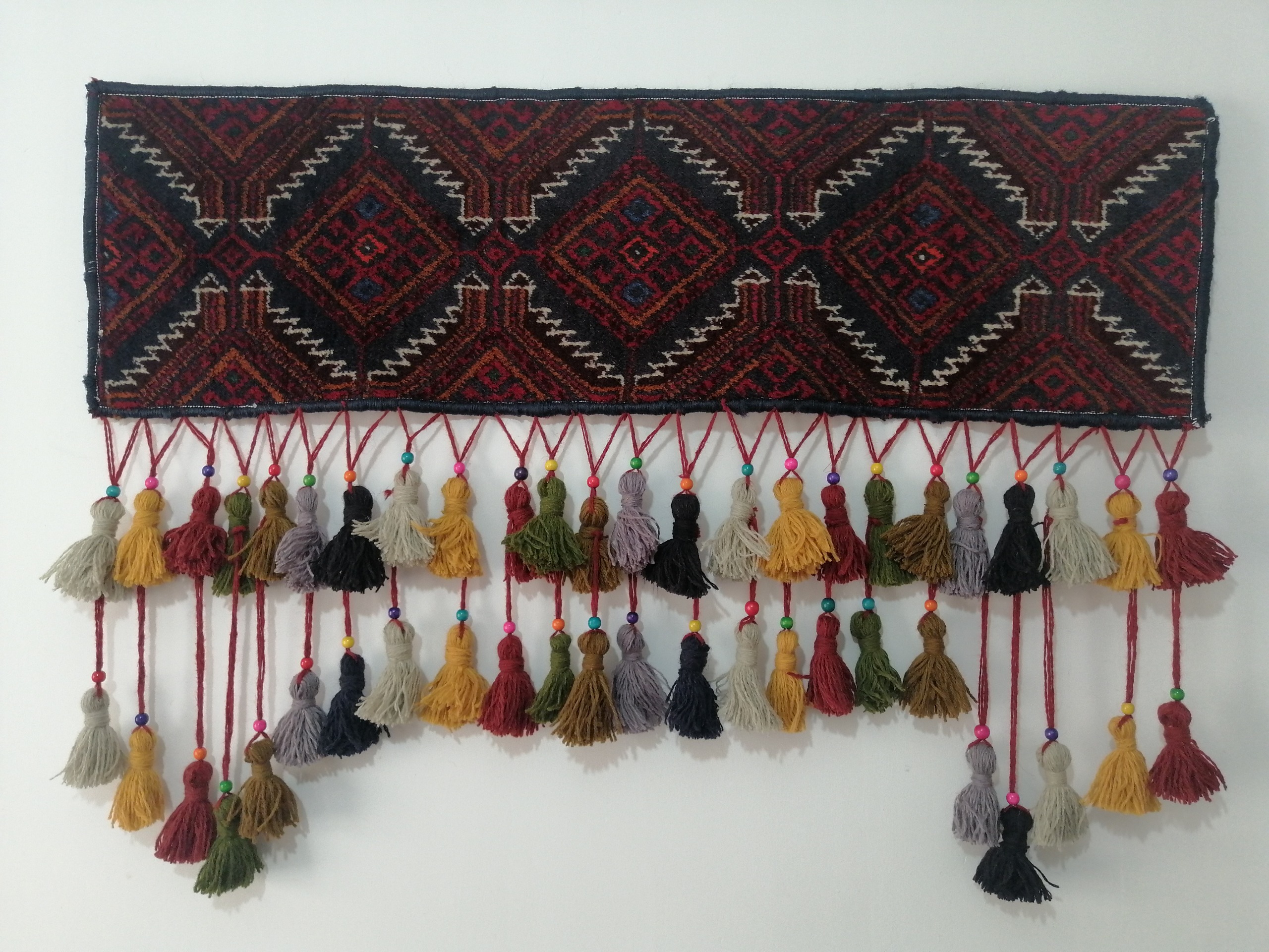جنس کتیبه ها از گلیم های سنتی کهنه و قدیمی استفاده شده و جنس نخ ها هم پشمی می باشد