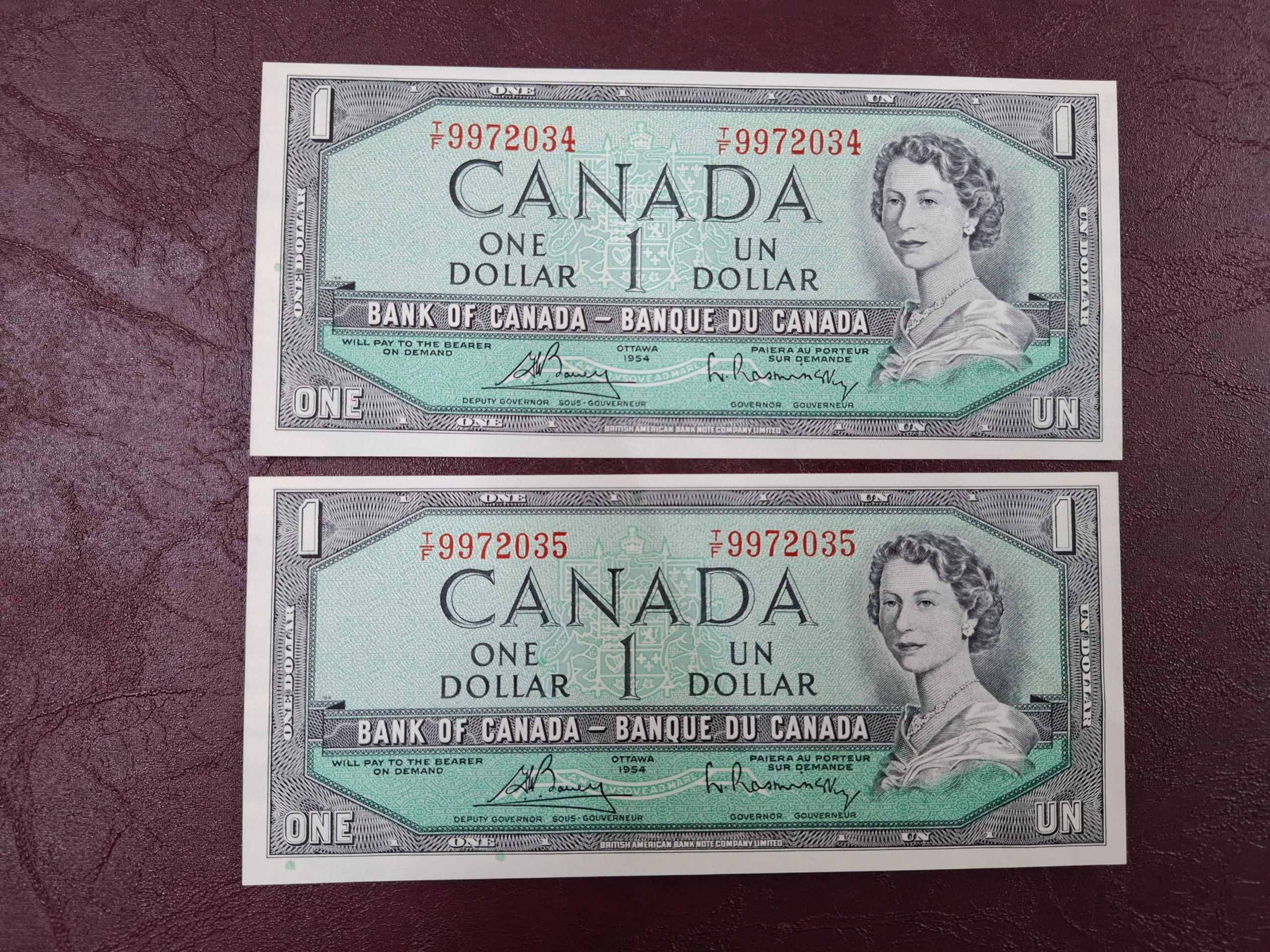 جفت بانکی یک دلار کانادا تصویر ملکه جوان 1954