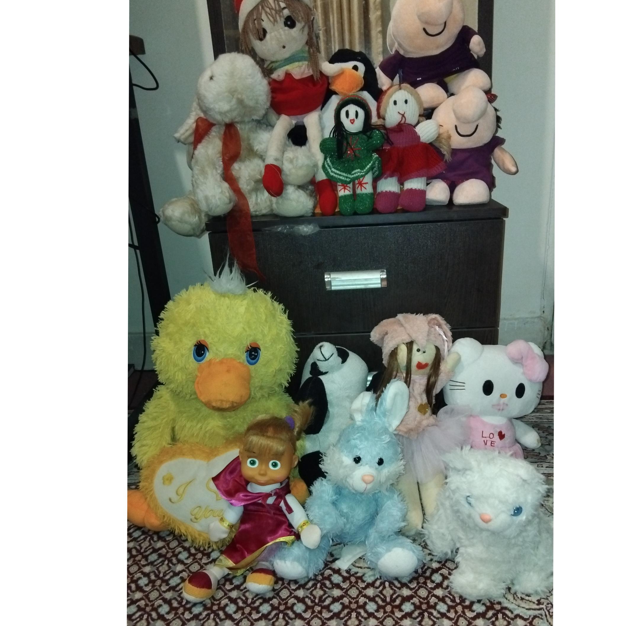 تعداد چهارده عدد عروسک بسیار عالی با کیفیت و تمیز به بهترین قیمت مناسب به علت کمبود جا همگی با هم ارسال میشود. خدمت خریدار محترم با تشکر