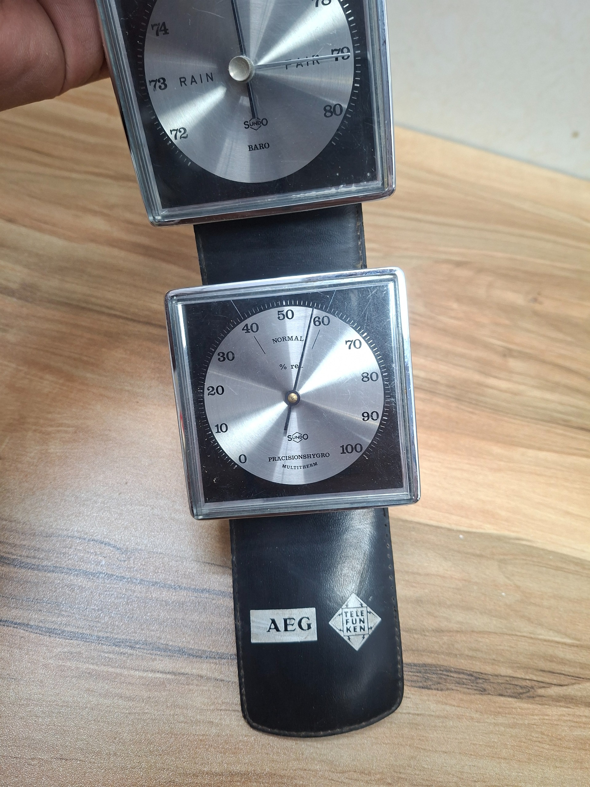 سه کاره دیواری دماسنج،رطوبت سنج و فشار سنج تبلیقات شرکت تلفن کن و AEG طبق تصاویر یکی از طلق ها ترک داره