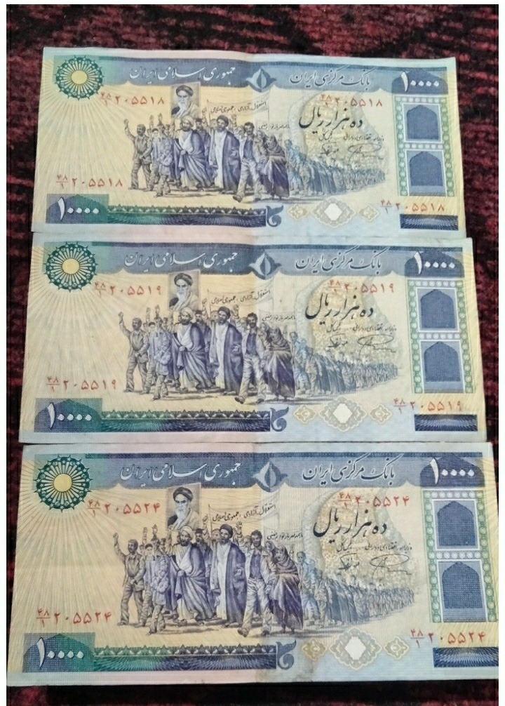 سه برگ اسکناس 10000 ریالی با شماره های خاص و پشت سرهم مناسب کلکسیونرهای حرفه ای..کیفیت طبق عکس