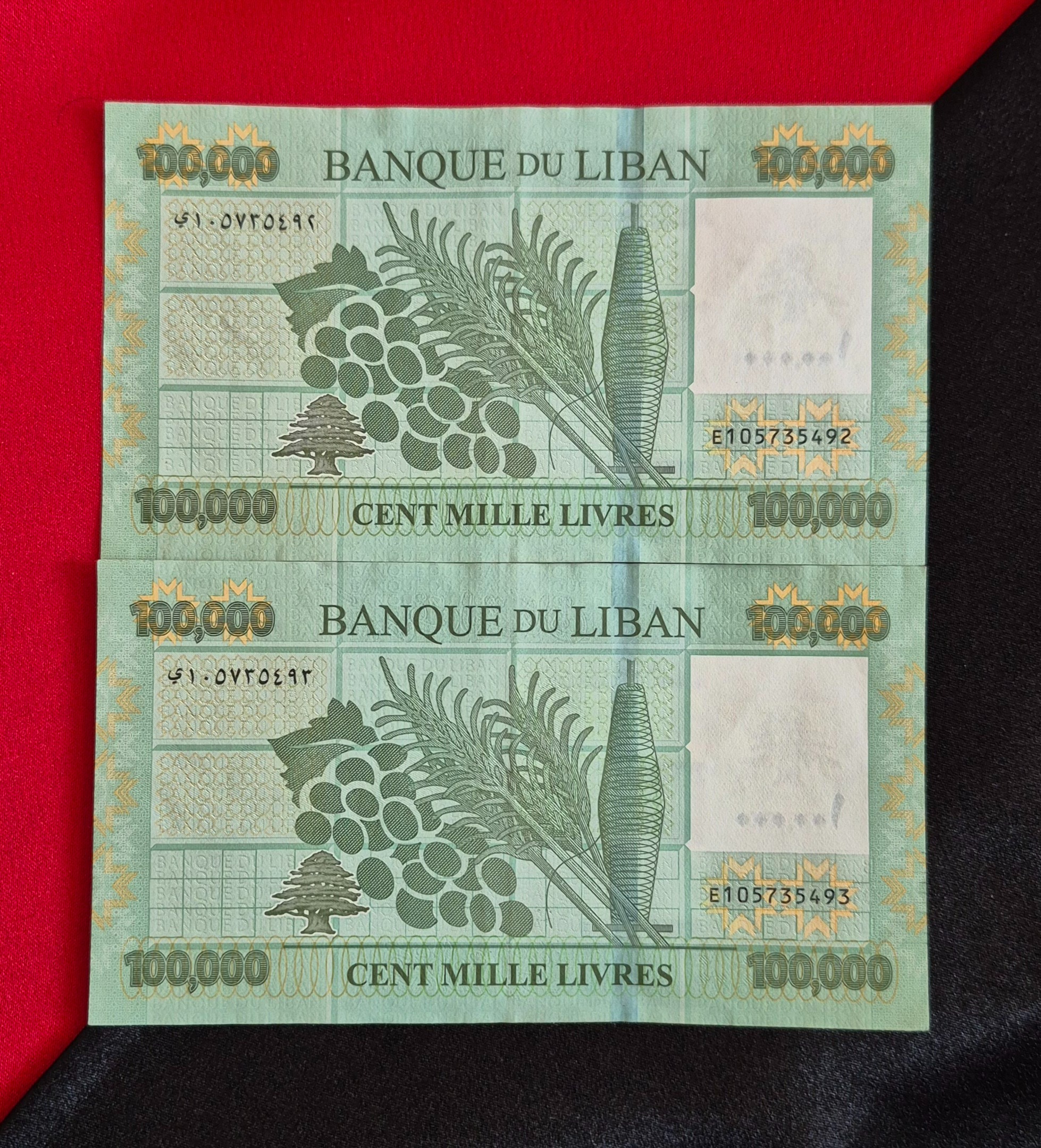100 هزار لیره لبنان 2022 جفت در حد نو گالری سعید
