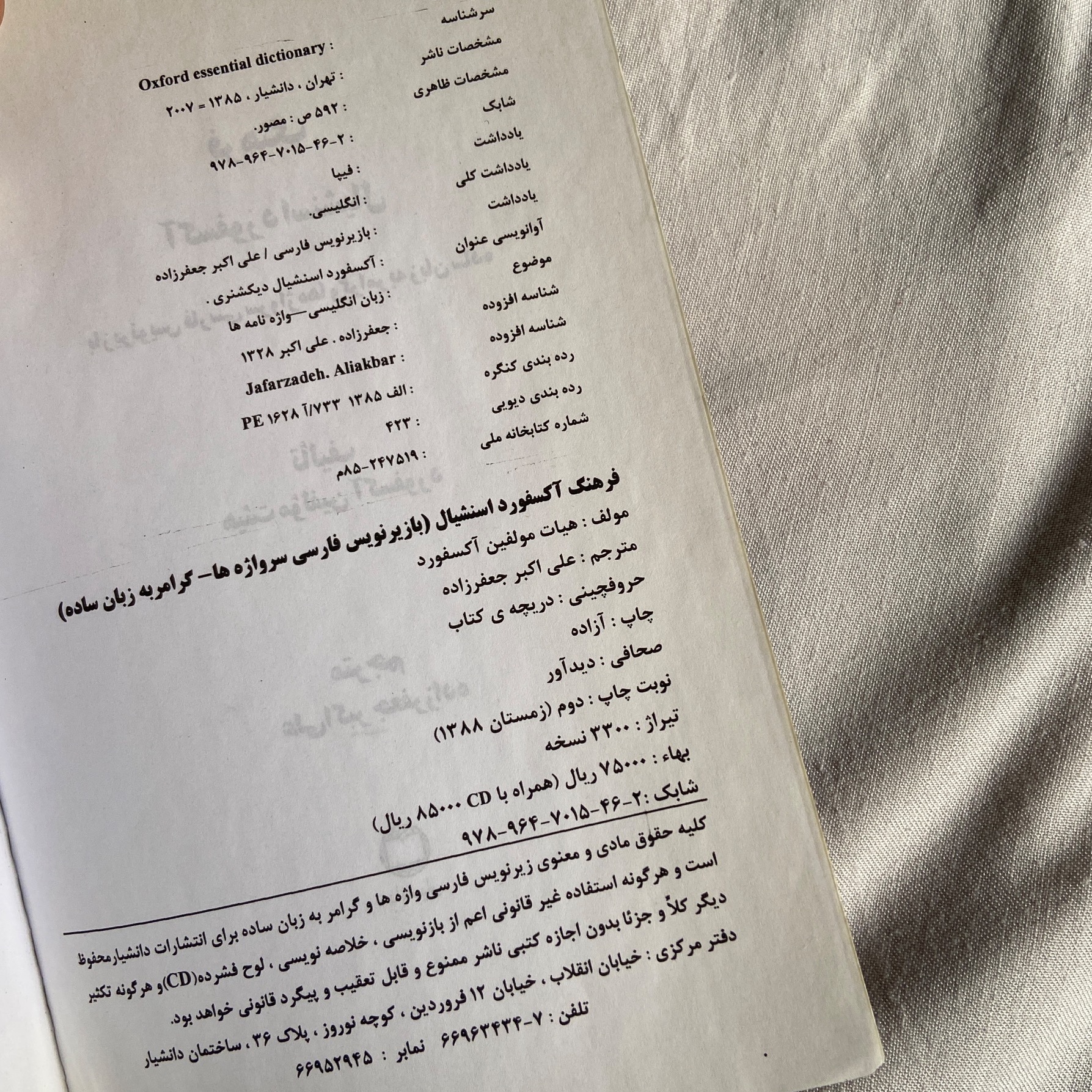 | نوع چاپ کتاب | چاپ اصل |