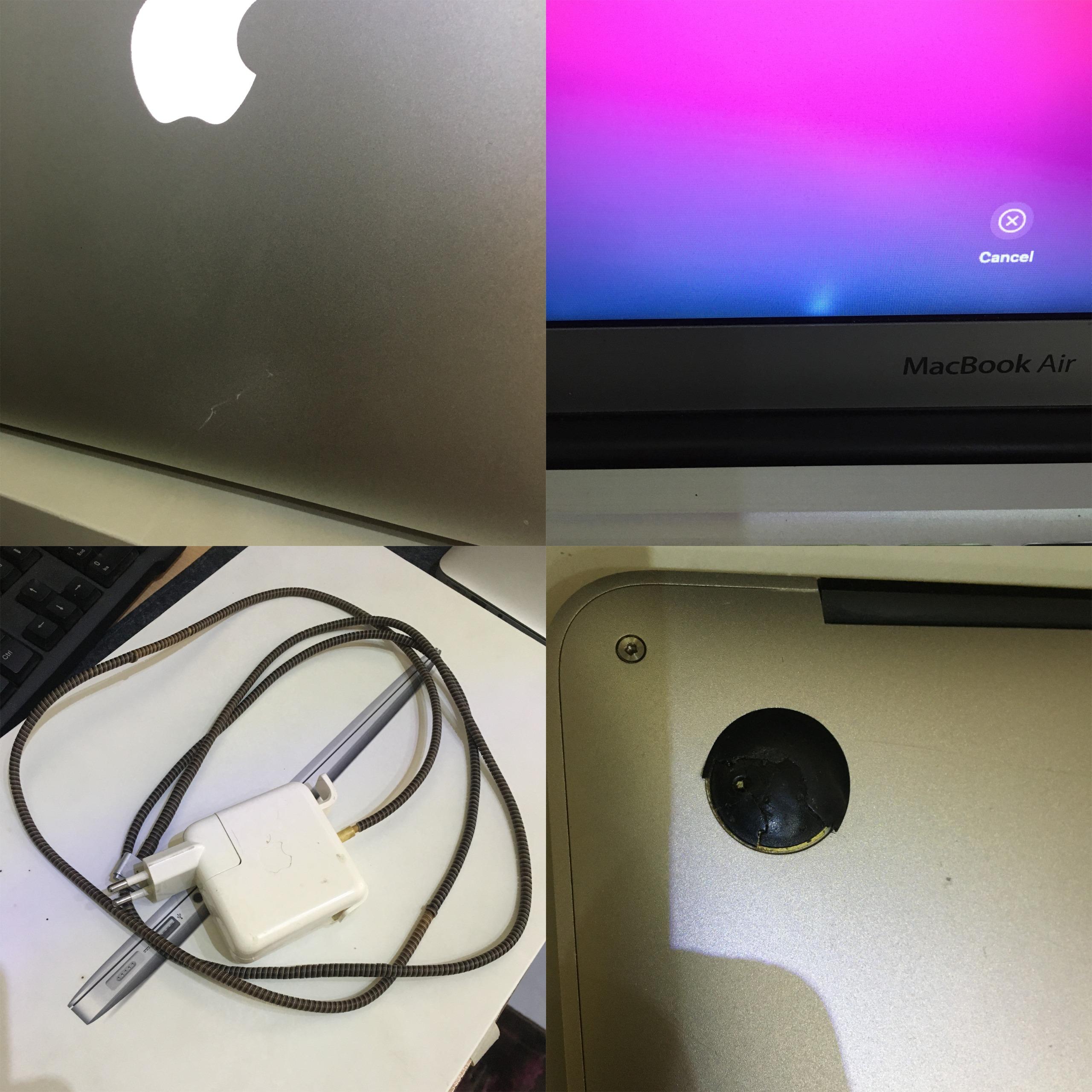 3:روی میانیتور قسمت پایین کنار لوگوی macbook airیه مقدار پر نور تر هست که همون اوایل در اثر همون خراش به وجود اومده و تاثیری تو کارکرد نداره و به سختی دیده میشه(عکس اخر)