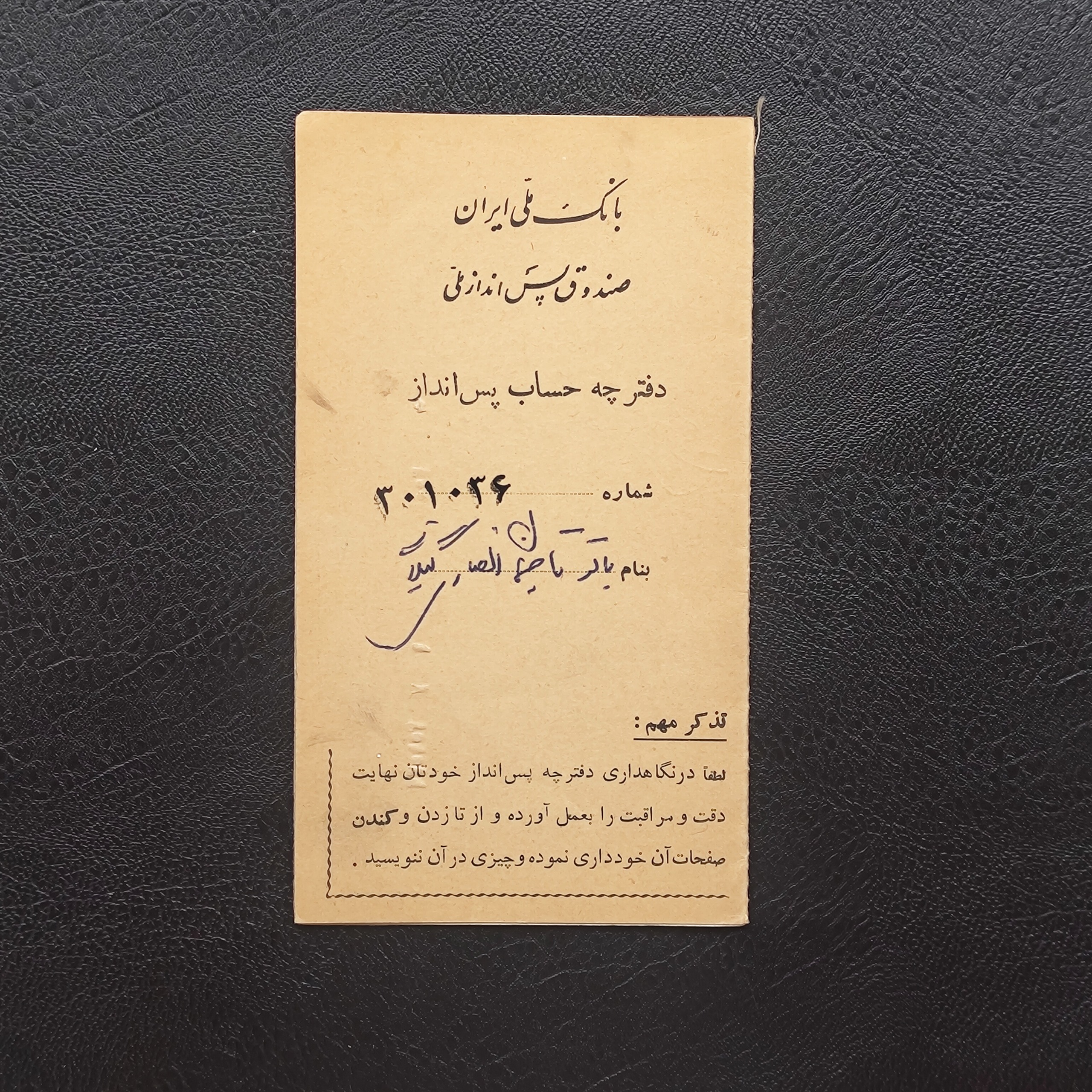 دفترچه پس انداز بانک ملی