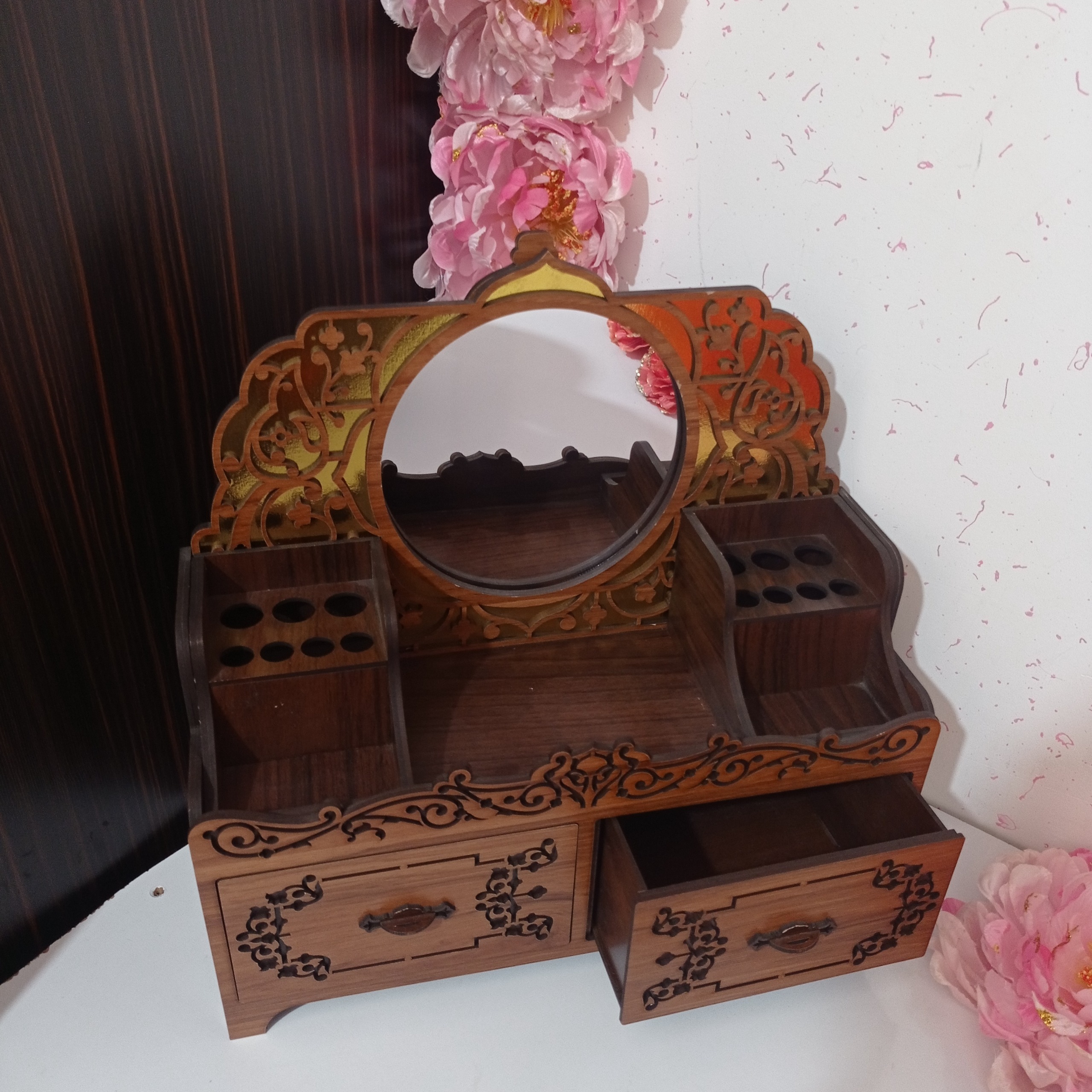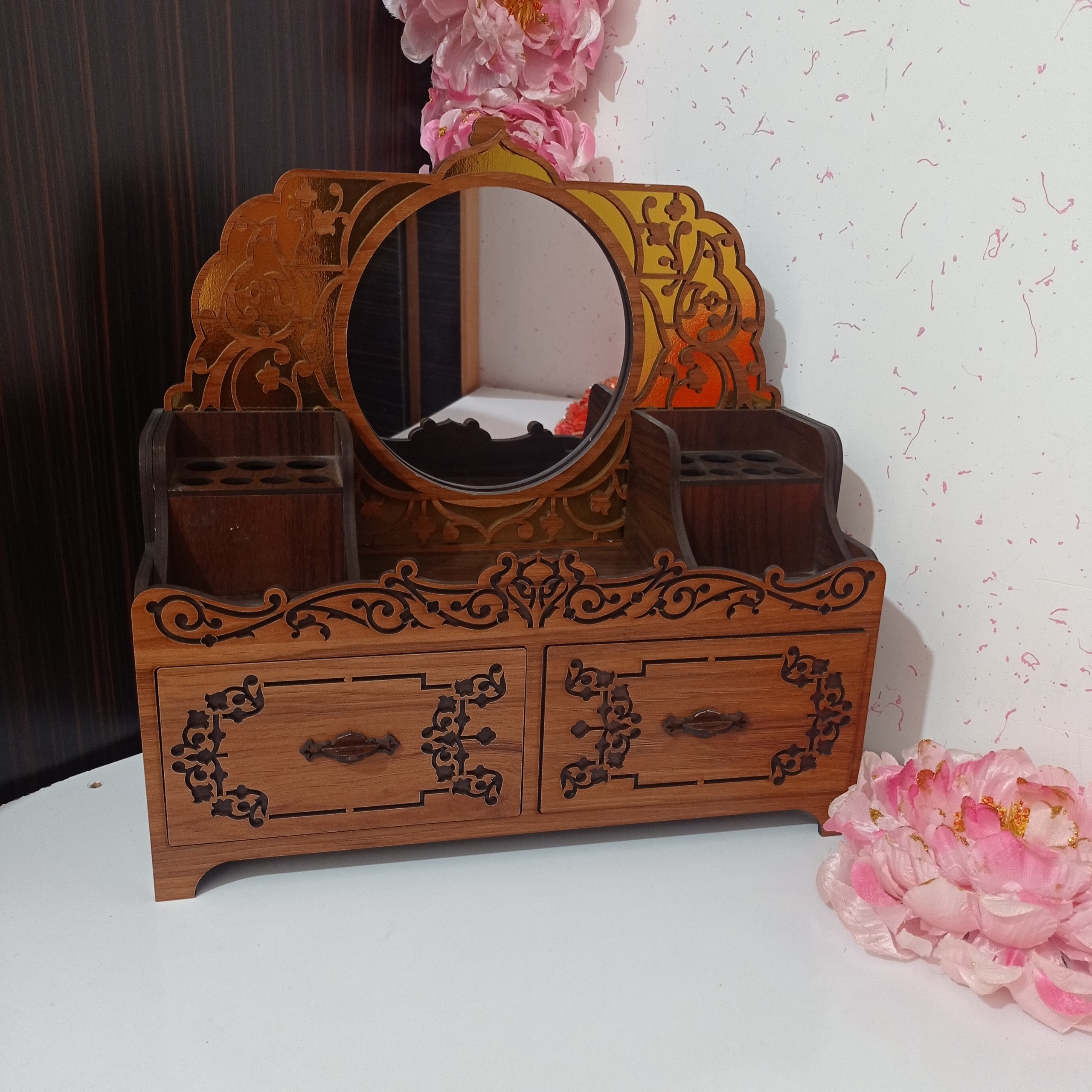 استند لوازم آرایش ، دو کِشو و جا مدادی ، آینه دار