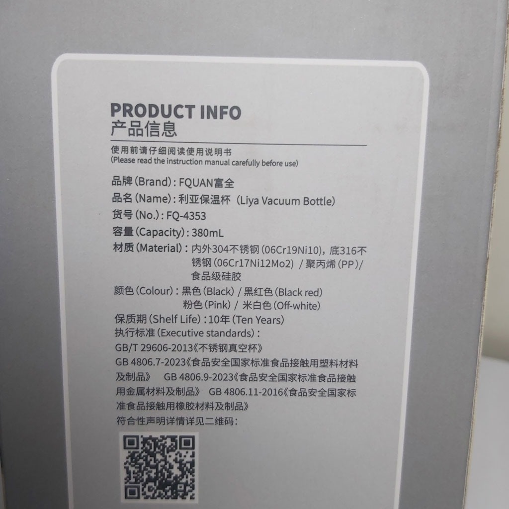 تراول ماگ اف کوان مدل FQ-4353 یک کالای شیک و کاربردی است. گنجایش این تراول ماگ 0.38 لیتر است. جنس این تراول ماگ از استیل ضد زنگ SUS 316 است. این فلاسک دارای قفل دو مرحله ای است. مزیت این قفل آن است که تصادفی باز نشود. همچنین دارای یک آسان نوش است. یک فیلتر استیل هم زیر درب تراول ماگ قرار دارد.