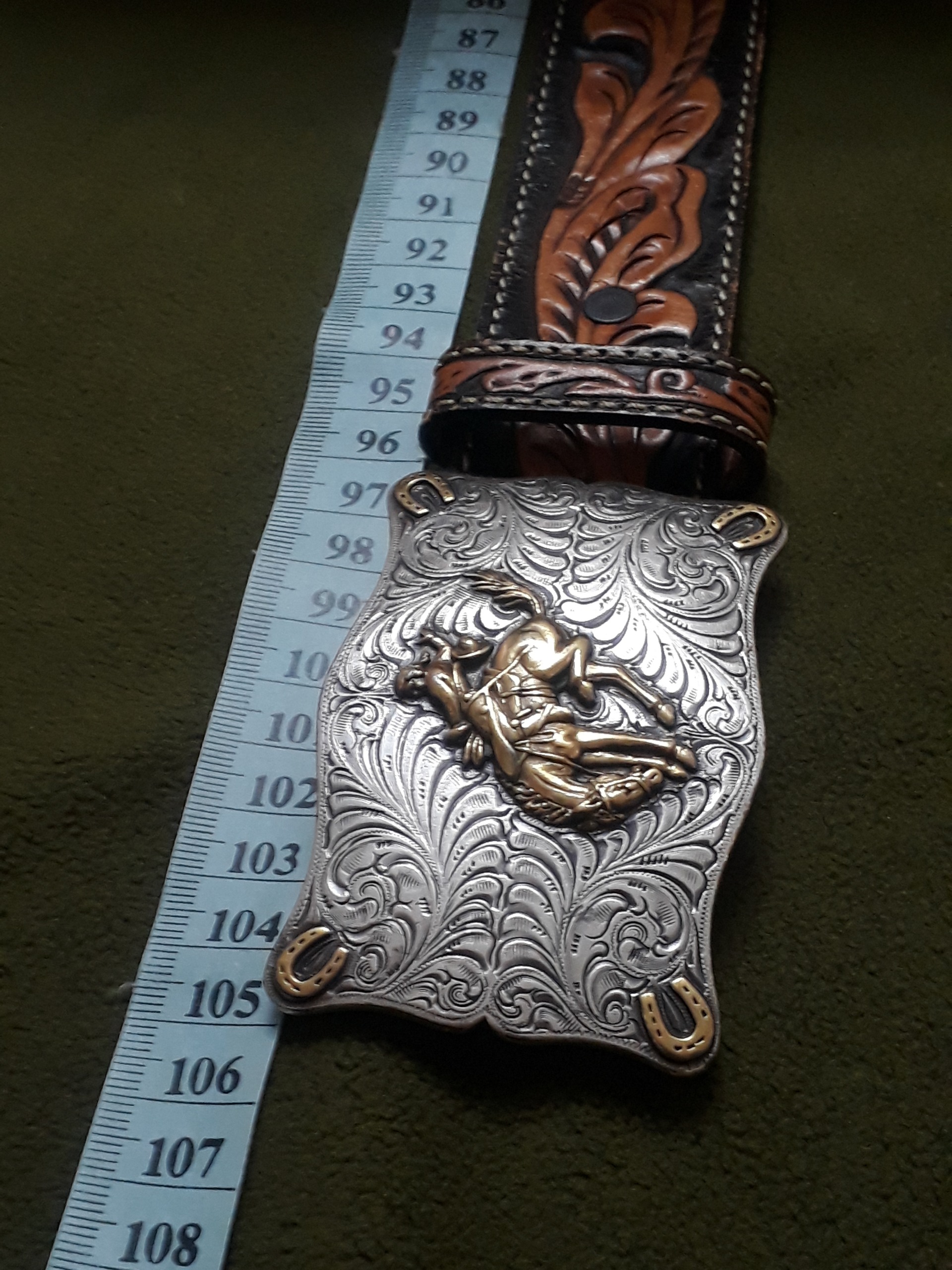 کمربند نقش برگ قهوه ای برجسته((مدل داغی برجسته))