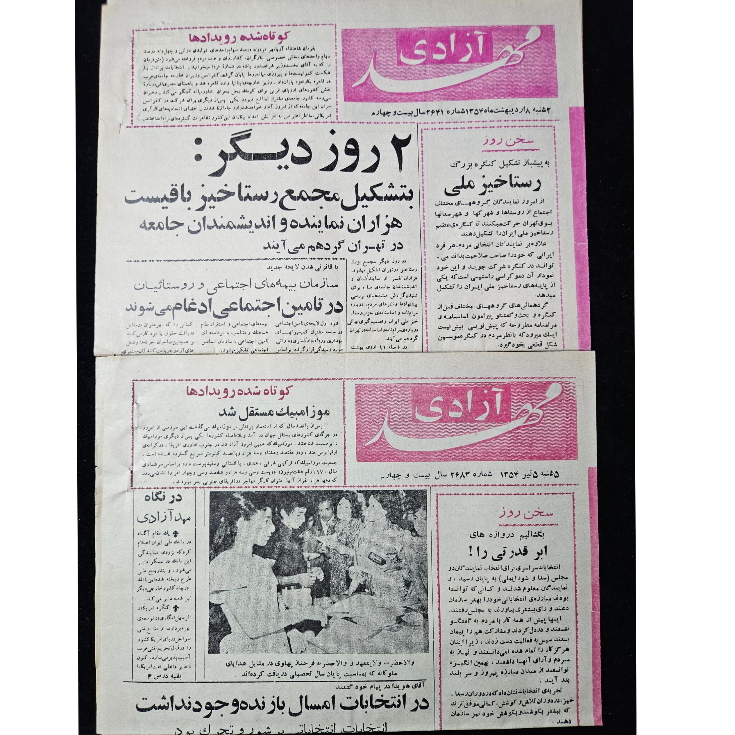 دو شماره روزنامه مهدی آزادی سال 1354