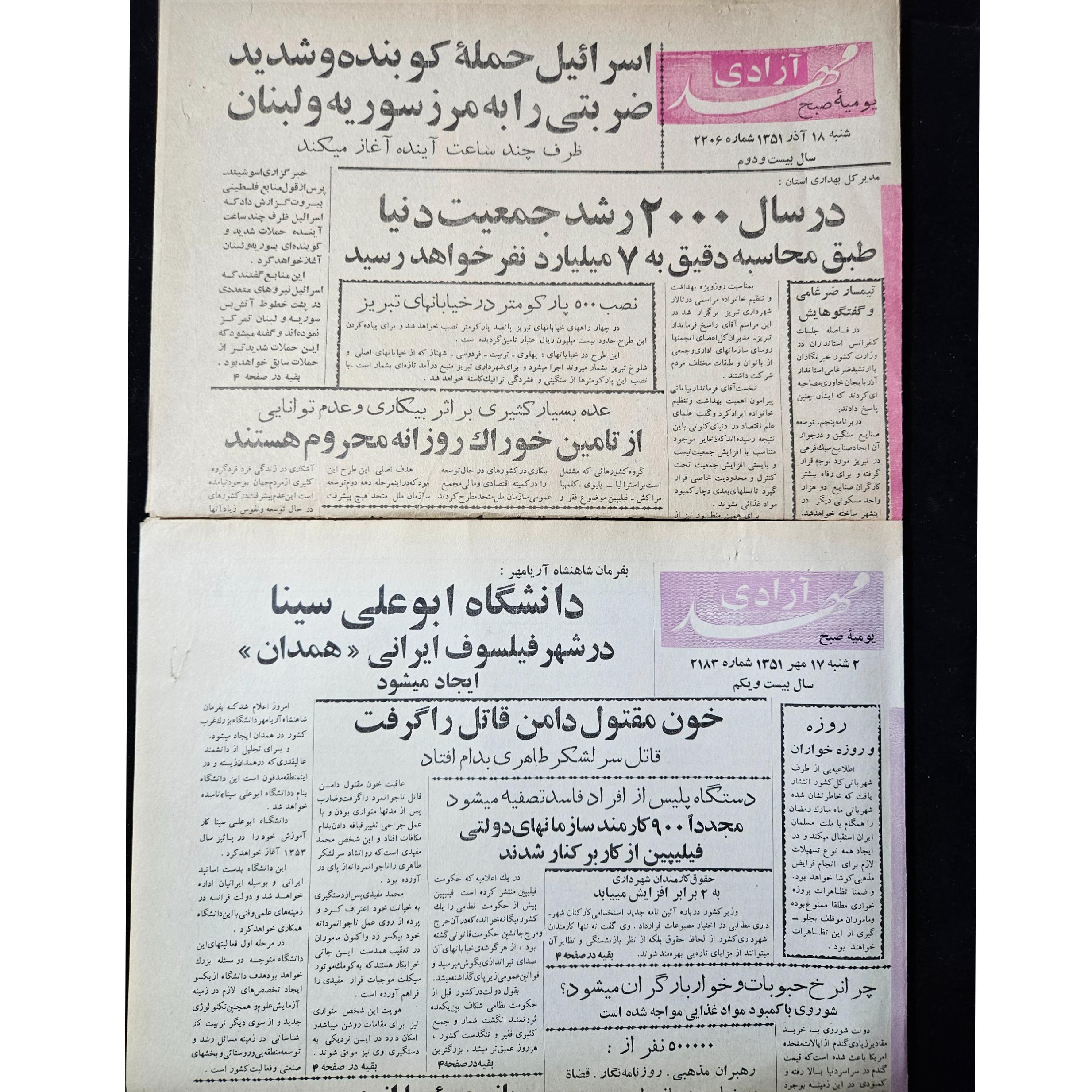 دو شماره روزنامه مهدی آزادی سال 1351