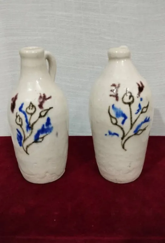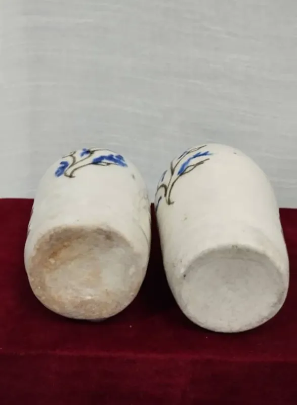 دوعددکوزه یا گلدان قدیمی زیبا 15سانتی زیبا عزیزان نمیدونم متل چه دوره ای همینطوری زدم پهلوای ولی شاید قدیمی تر باشه
