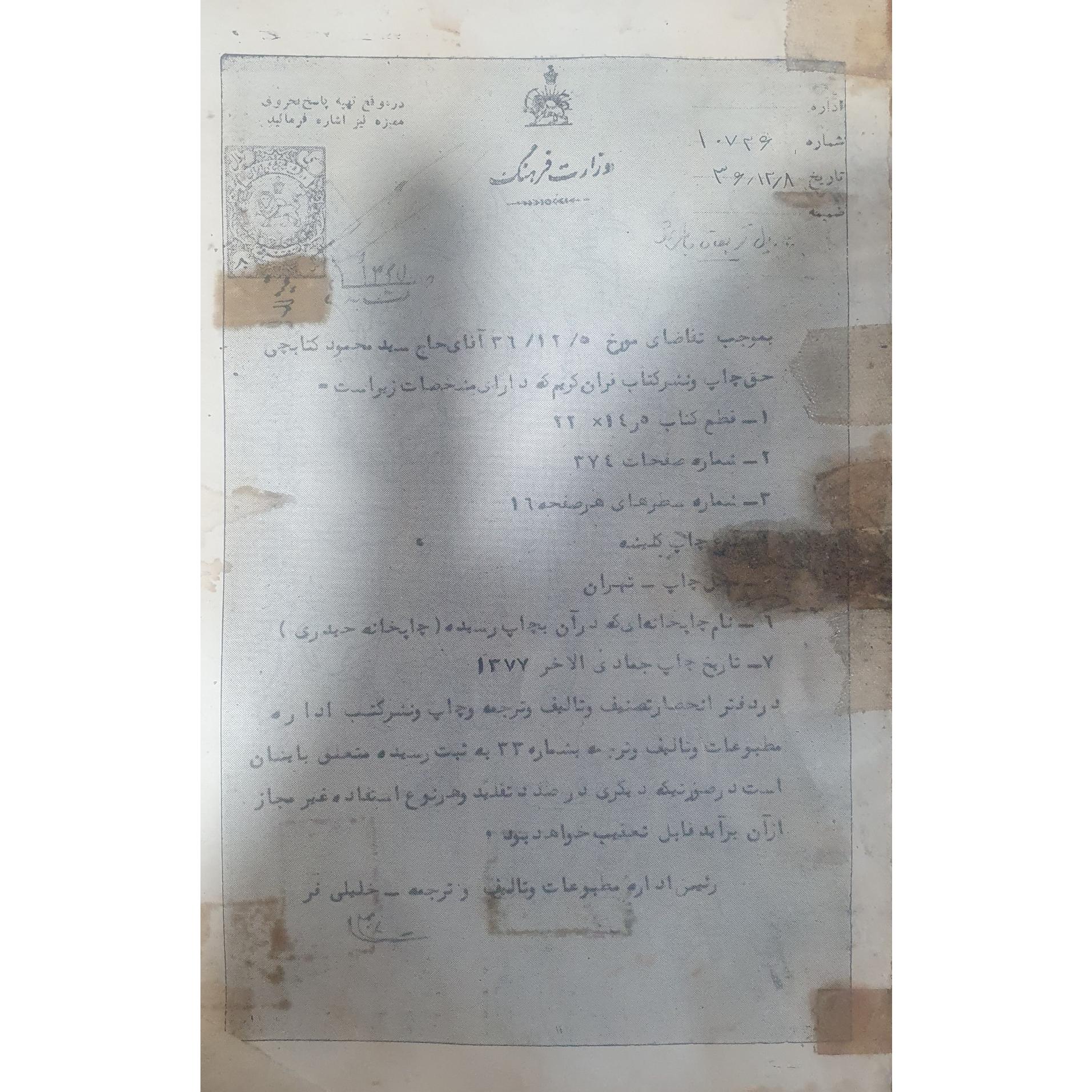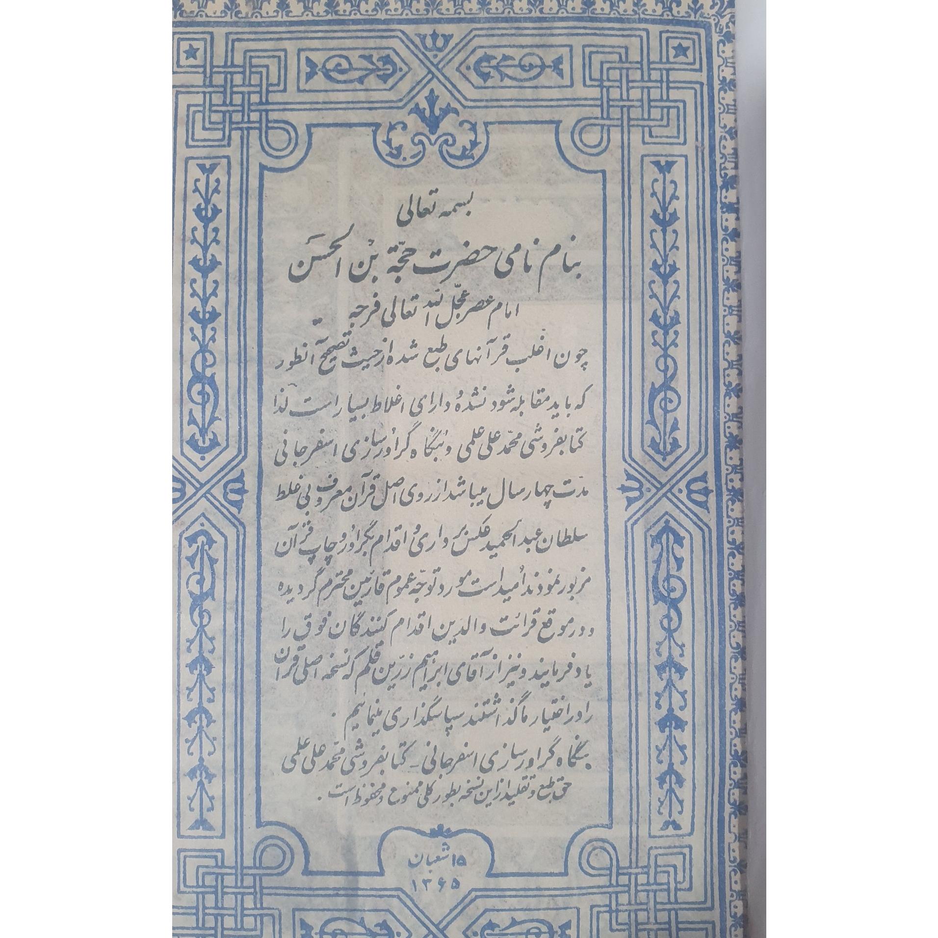 چهار عدد قرآن قدیمی به همراه یک عدد کتاب دعای دست نویس قدیمی تقدیم میگردد.به صورت یکجا . در صورت نیاز امکان ارسال عکس بیشتر نیز هست .به علت قدمت بعضی از صفحات پارگی دارد