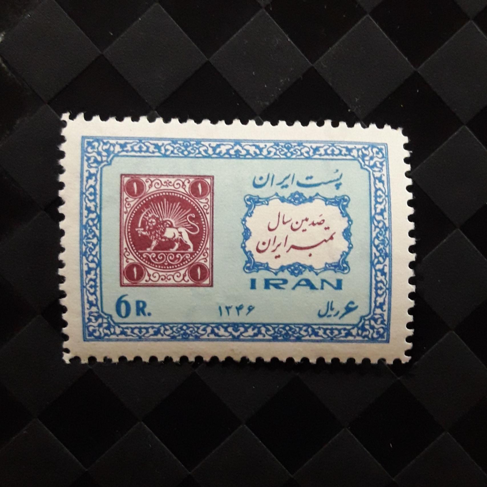 تک تمبر 6 ریال پهلوی 1346 یکصدمین سال تمبر