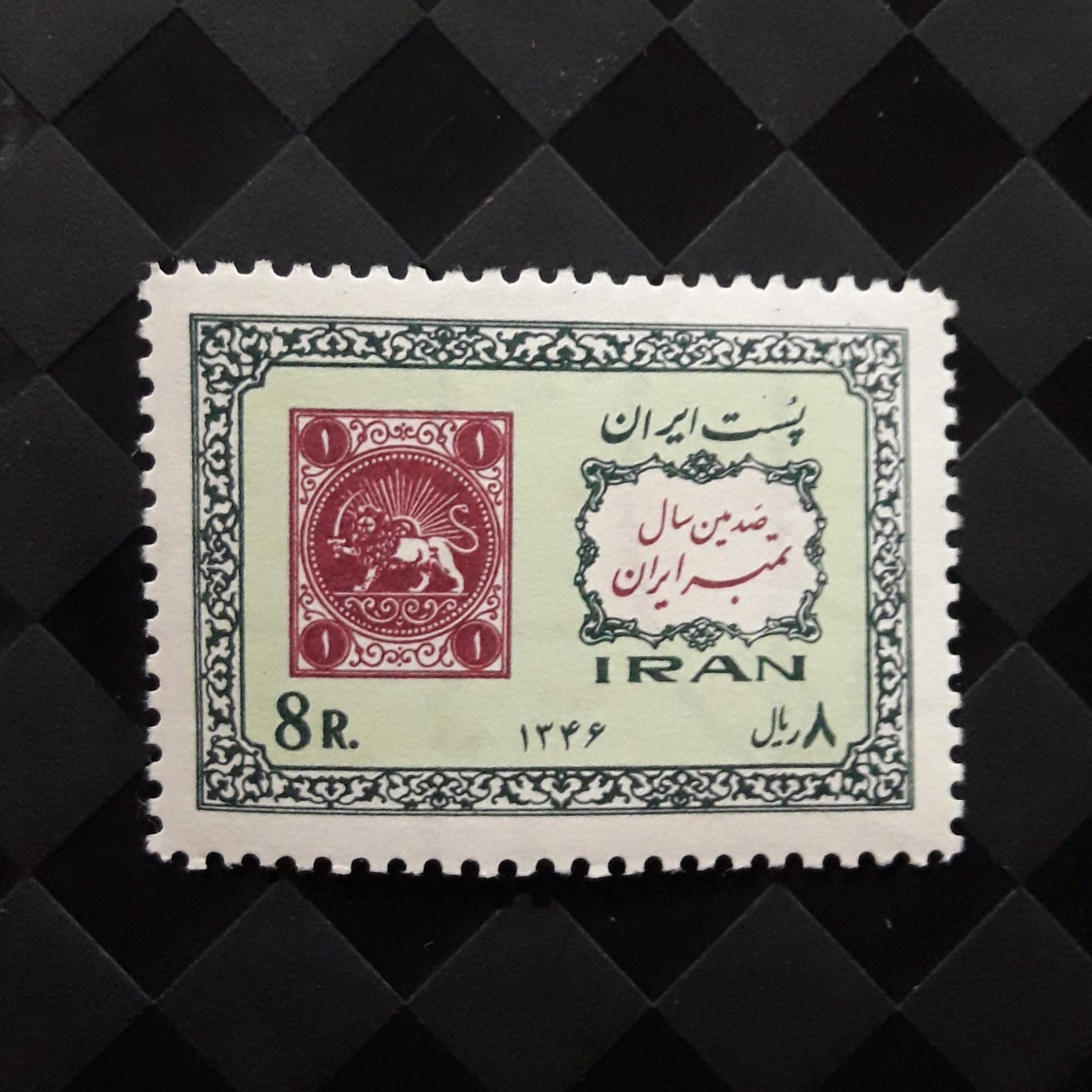 تک تمبر 8 ریال پهلوی 1346 یکصدمین سال تمبر