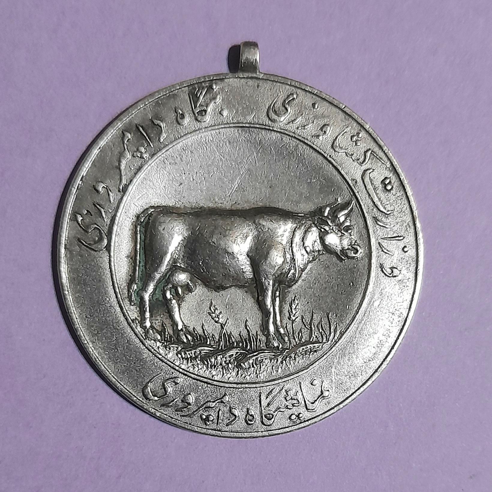 مدال نقره یادبود نمایشگاه دامپروری وزارت کشاورزی 1334 فوق العاده کمیاب وزن 15/8گرم، قطر 4 سانتیمتر