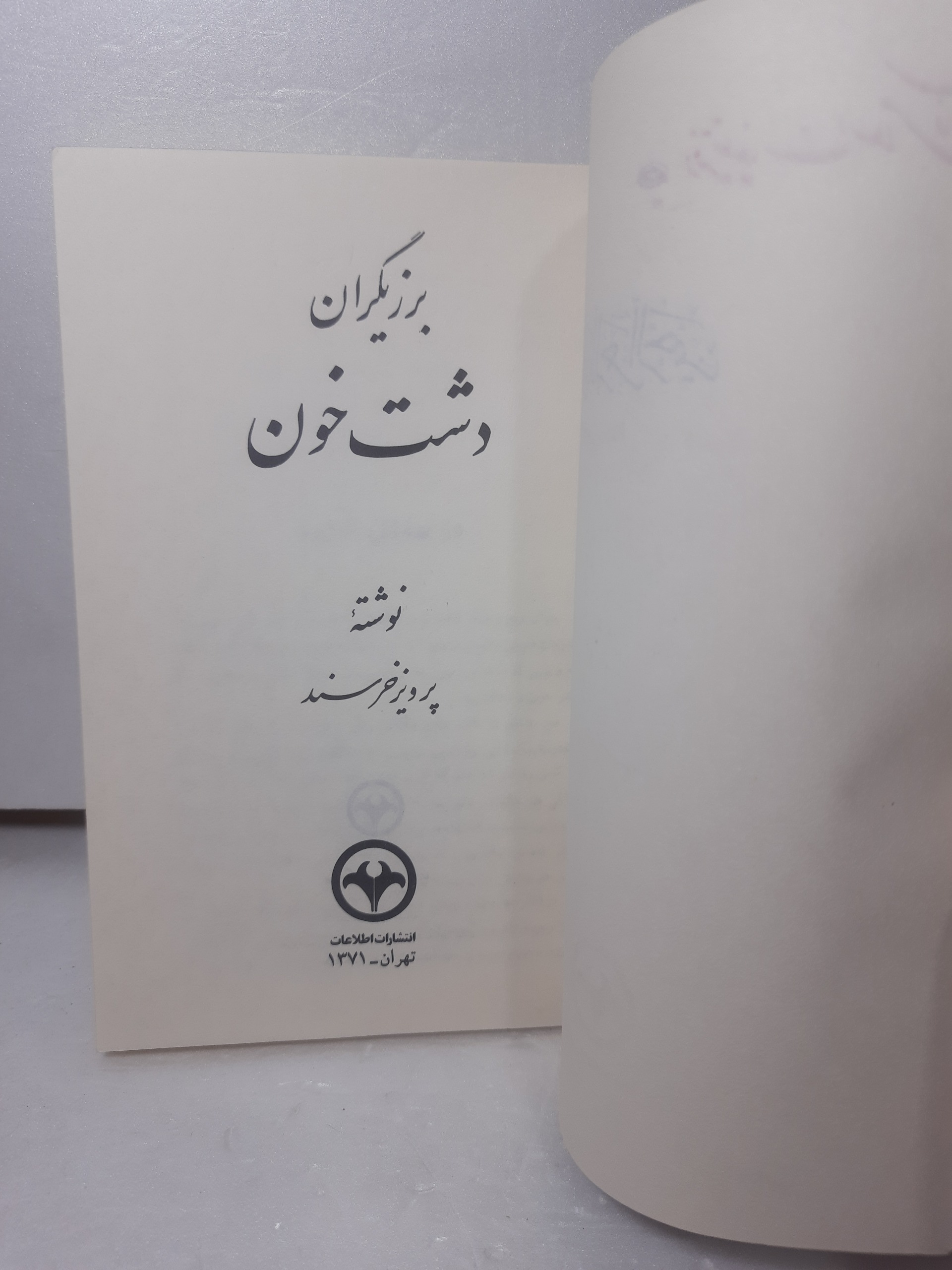 کد 1954 برزیگران دشت خون نوشته پرویز خرسند با مقدمه محمدتقی شریعتی انتشارات اطلاعات در 96 صفحه چاپ سال 71 د دارای رنگ پریدگیهای جزئی میباشند