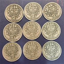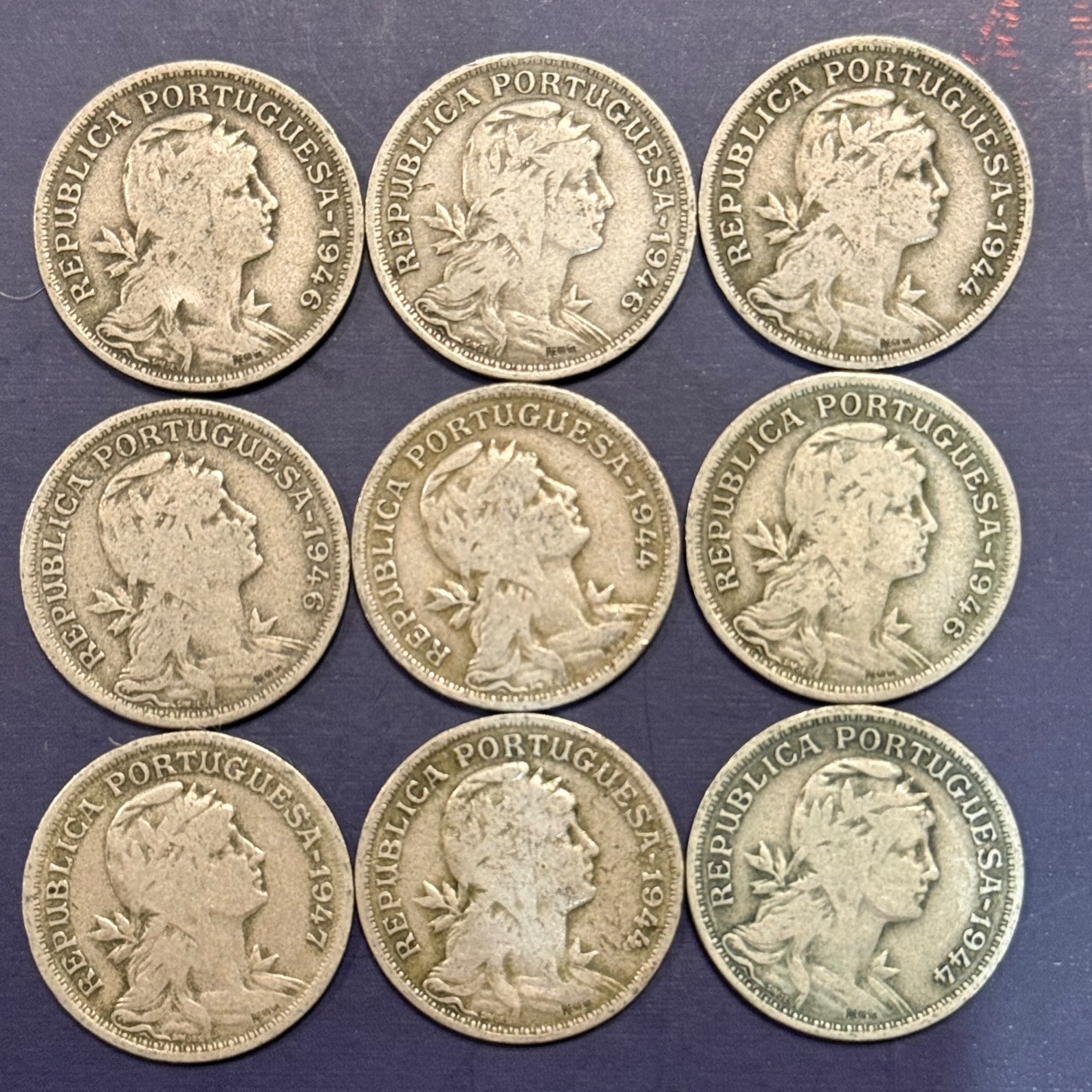سکه های پنجاه سنتاوو پرتغال همگی برای دهه 40 میلادی کیفیت ها تقریبا یکسان و قابل قبول هستند توجه داشته باشید قیمت مشخص شده برای یک سکه میباشد و تاریخ به صورت رندوم تقدیم میشود در صورت خرید چند سکه تاریخ های متنوع تقدیم میشود با خرید 10 سکه (می تواند از دهه های دیگر باشد از گالری سیمرغ دیدن کنید) یک عدد هدیه دریافت میکنید قیمت را خودتون مقایسه کنید