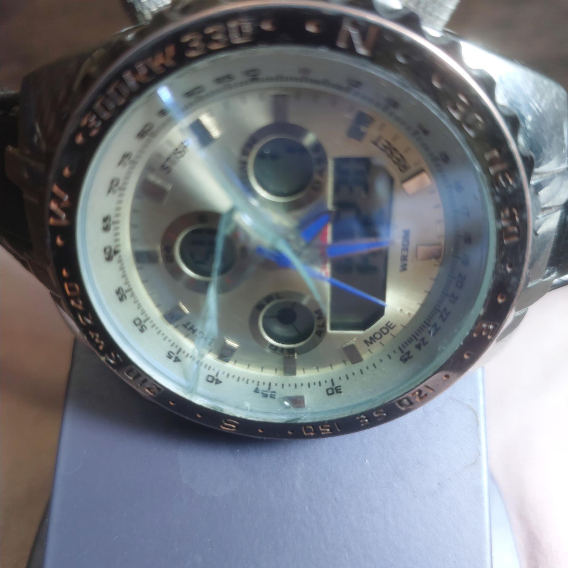 ساعت کامپیوتری و ساعت عقربه ای بیستک که هم بصورت عقربه ای و هم دیجیتالی کار میکند برند ساعت بیستک که چون تو لیست نبود سیکو زدم شیشه شکسته اگر خواستید میدهم تعویض کنند زه چرخانه و دو عدد باتری میخورد یکی بابت کامپیوتر و یکی هم بابت ساعت
