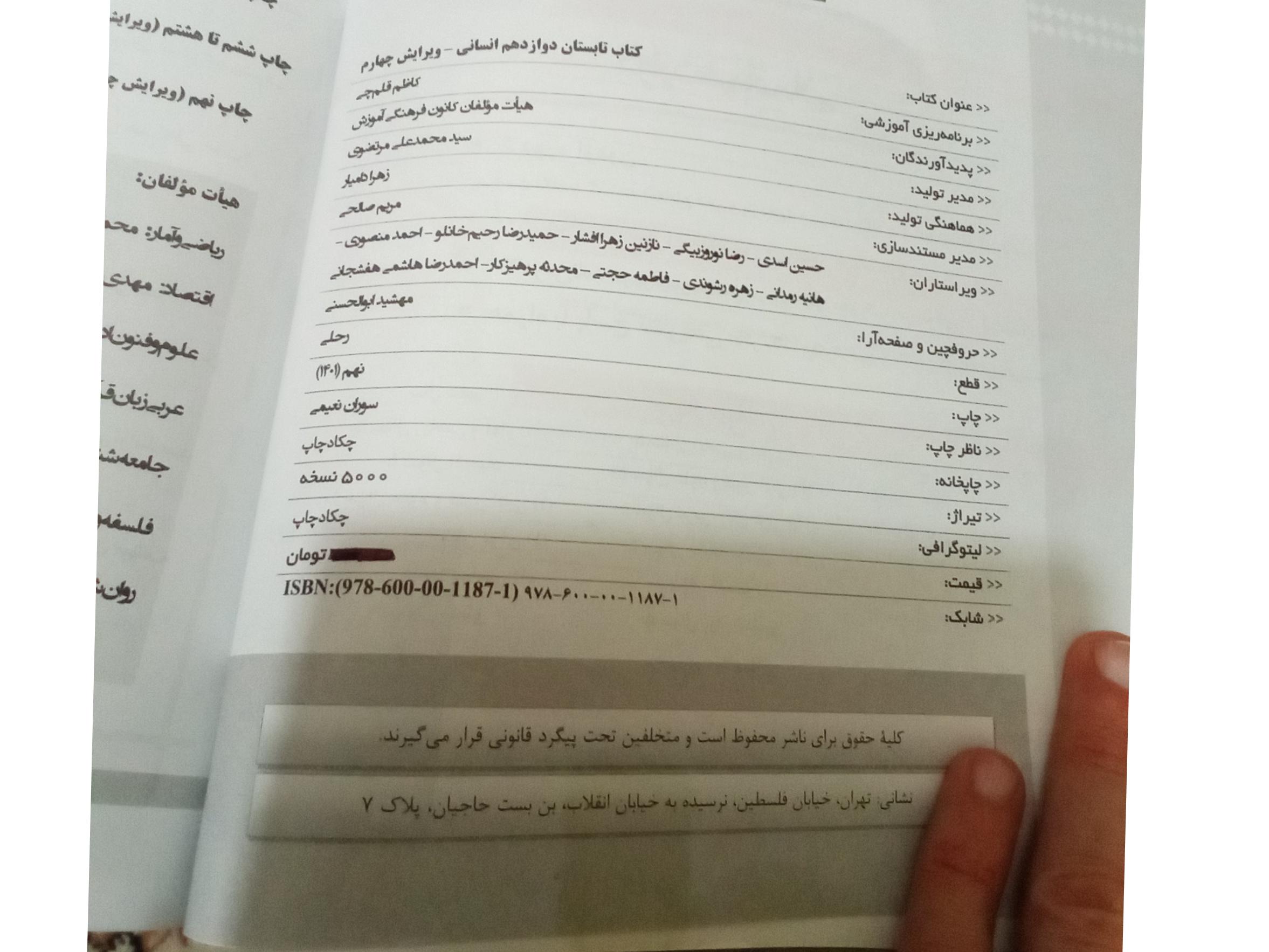 کتاب تابستان دوازدهم انسانی قلم چی 1401.کد592