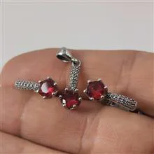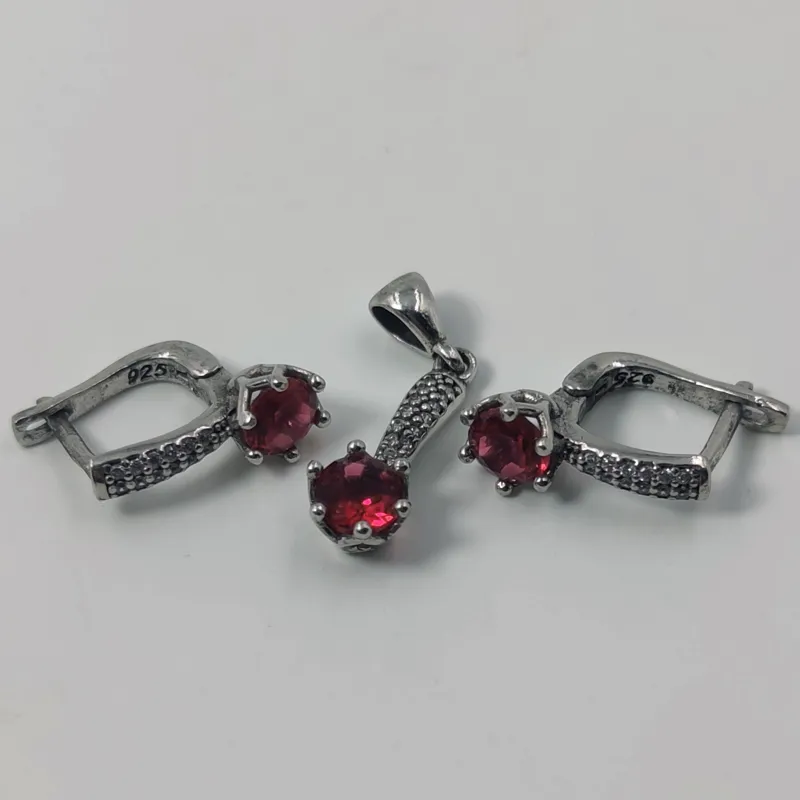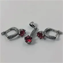 نیم ست نقره عیار 925 (نگین های برلیان کات سرخ رنگ)