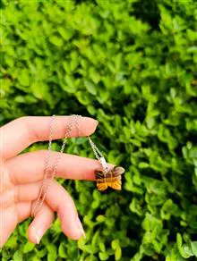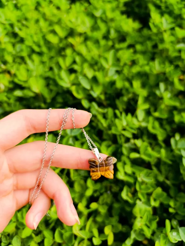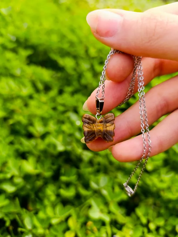 گردنبند سنگی چشم ببر معدنی طرح پروانه