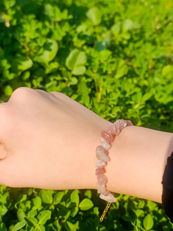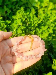 دستبند زنانه با سنگ رز کوارتز ماداگاسکار اصل