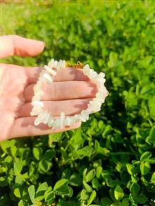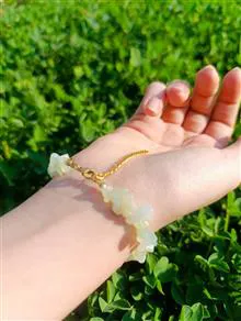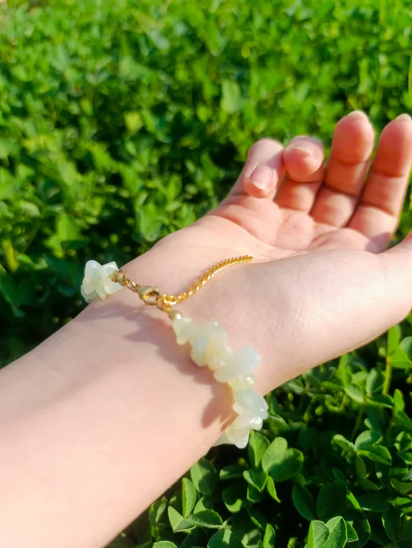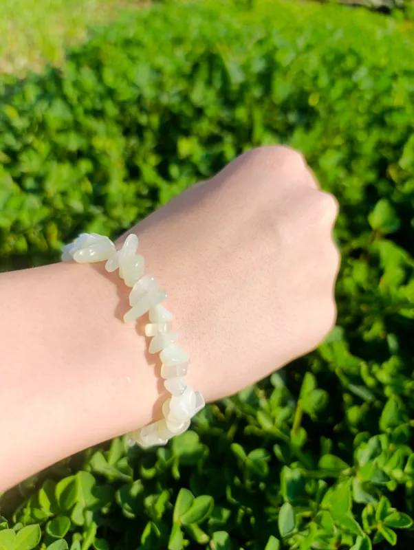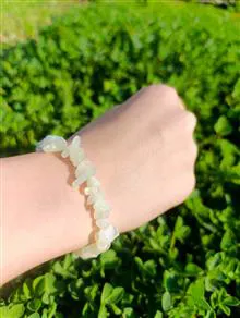 دستبند زنانه سنگ یشم روشن اصل با تراش چیپسی