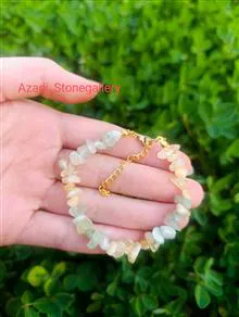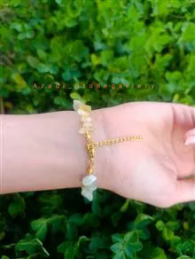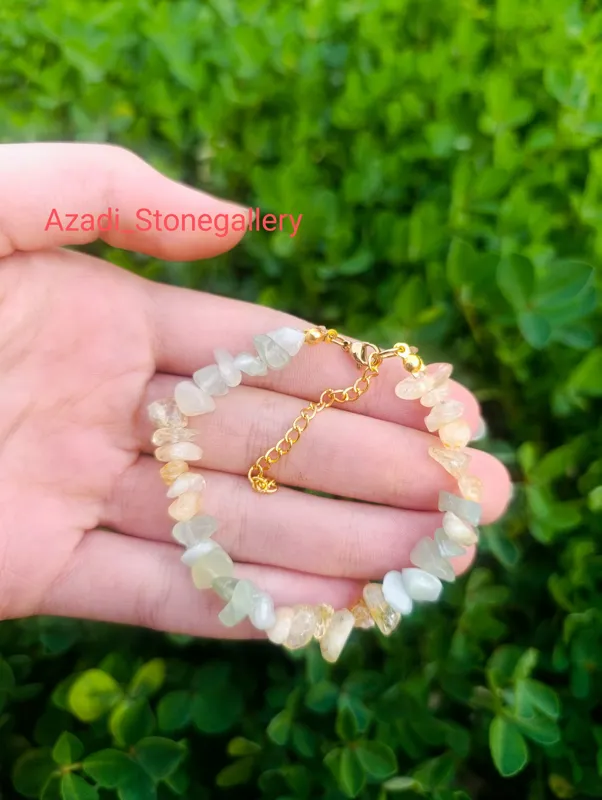 دستبند سنگی زنانه سیترین و یشم روشن اص تراش چیپسی