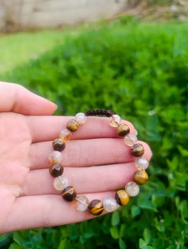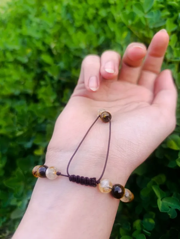 دستبند سنگی چشم ببر و سیترین اصل(ثروت و انرژی)
