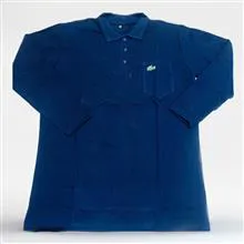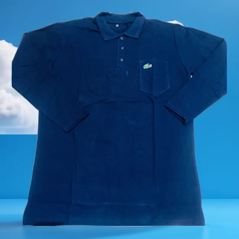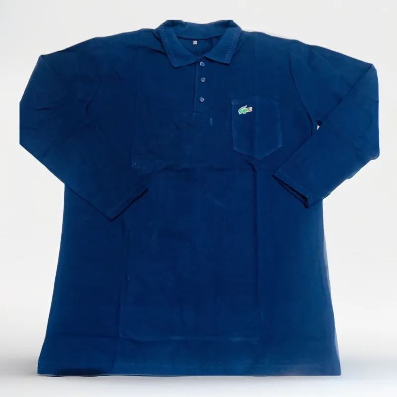 تیشرت آستین دار سه دکمه لاگوست سورمه ای کاری نخ و با قیمت مناسب در سه سایز L وXL وXXL
