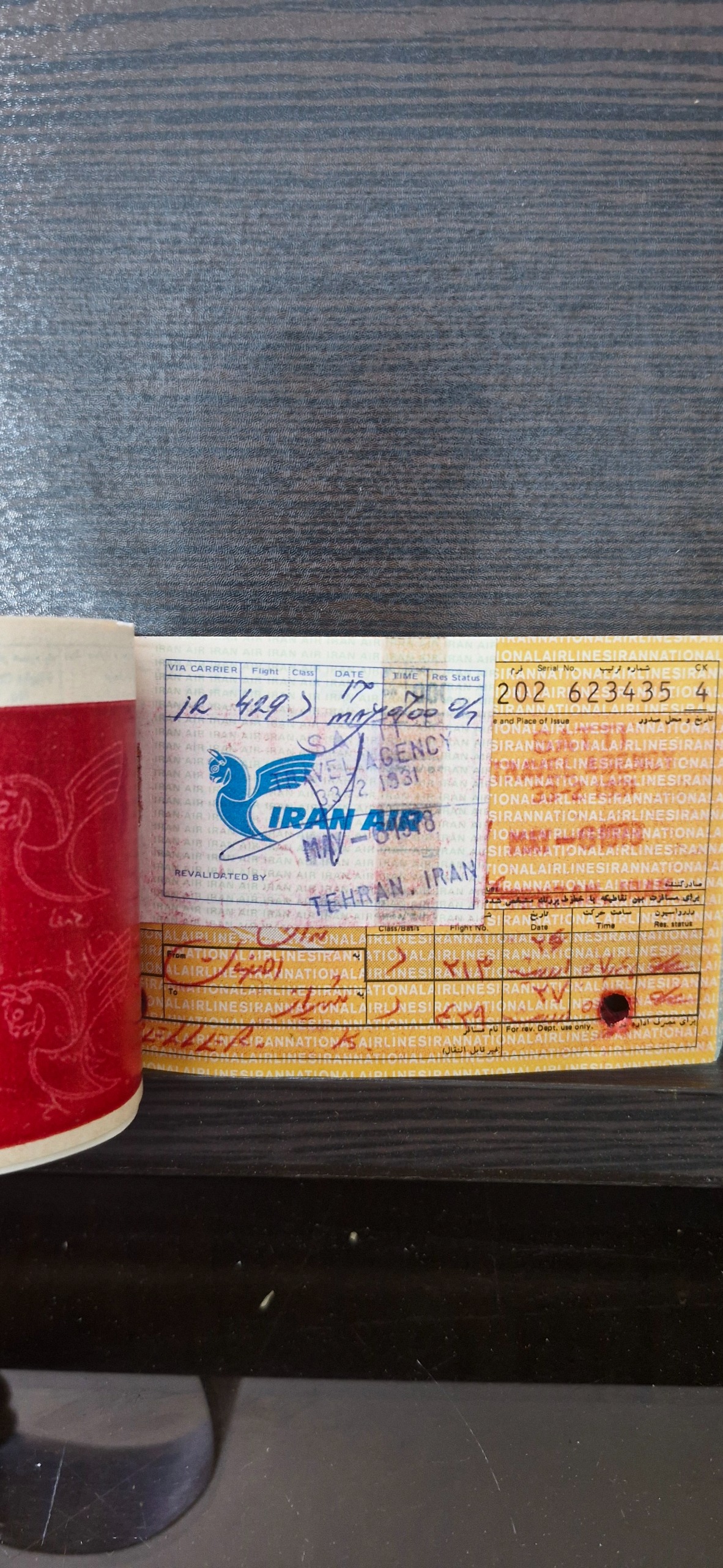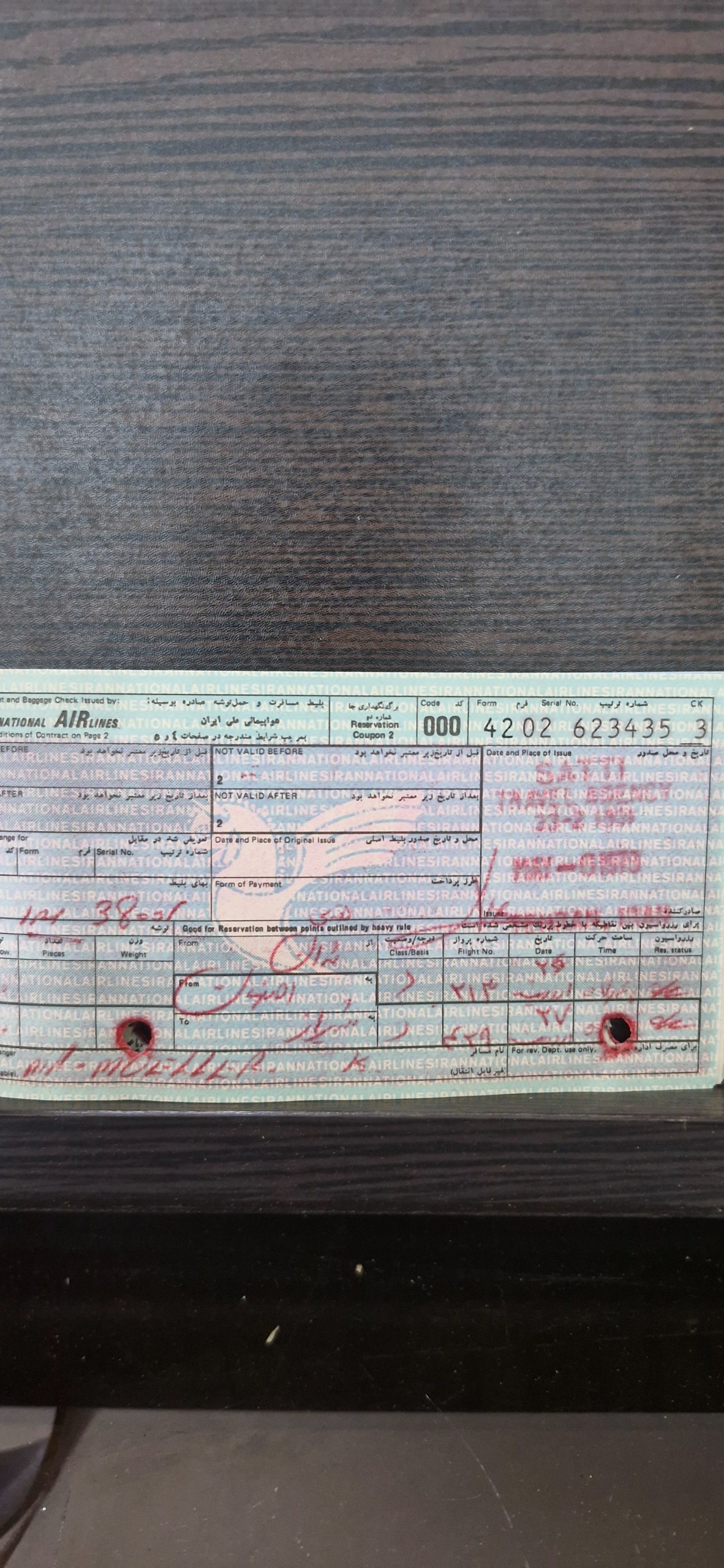 بلیط قدیمی هواپیما ملی ایران هما دهه50