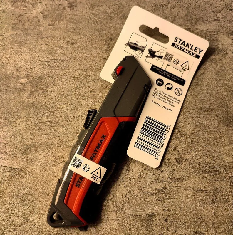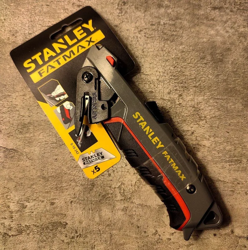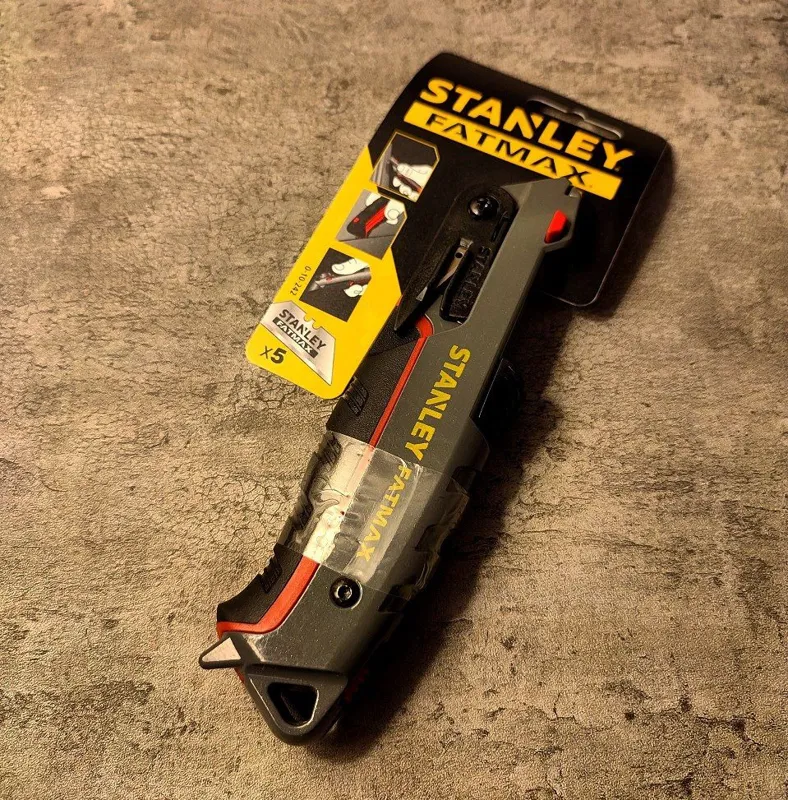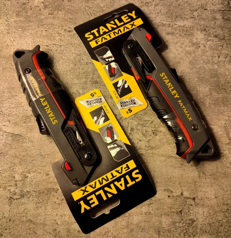 کاتر استنلی سری fatmax تیغه ذوزنقه ای یک کاتر حرفه ای بدنه تمام فلزی بسیار مقاوم خوش دست و زیبا همراه با 5 عدد تیغه یدک