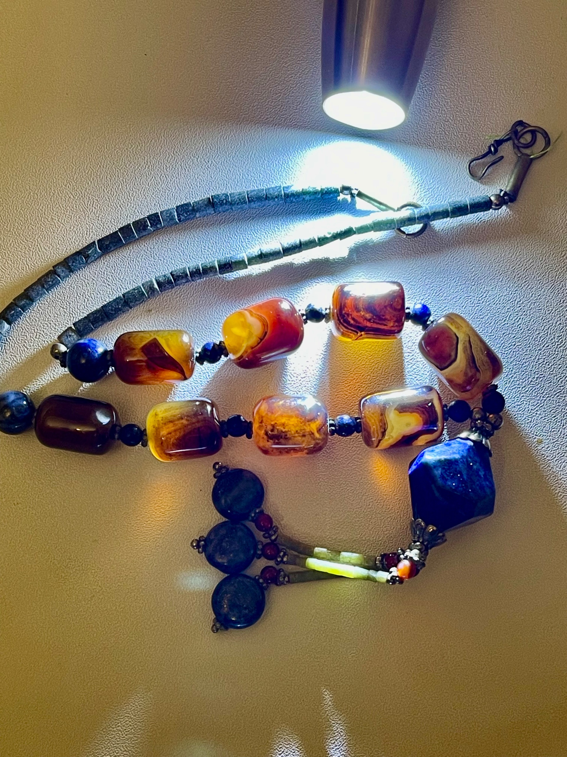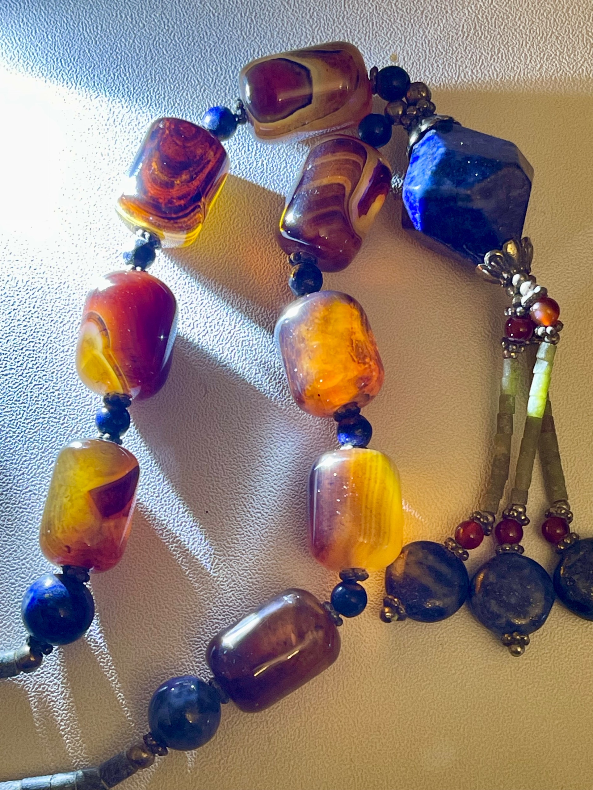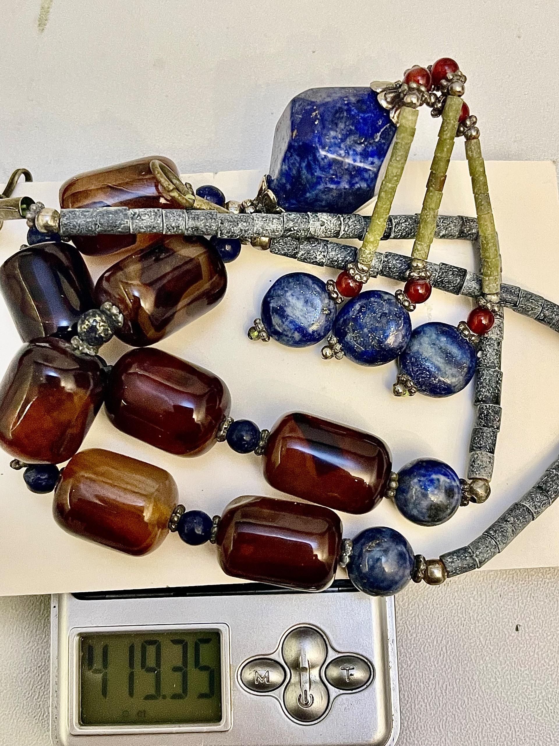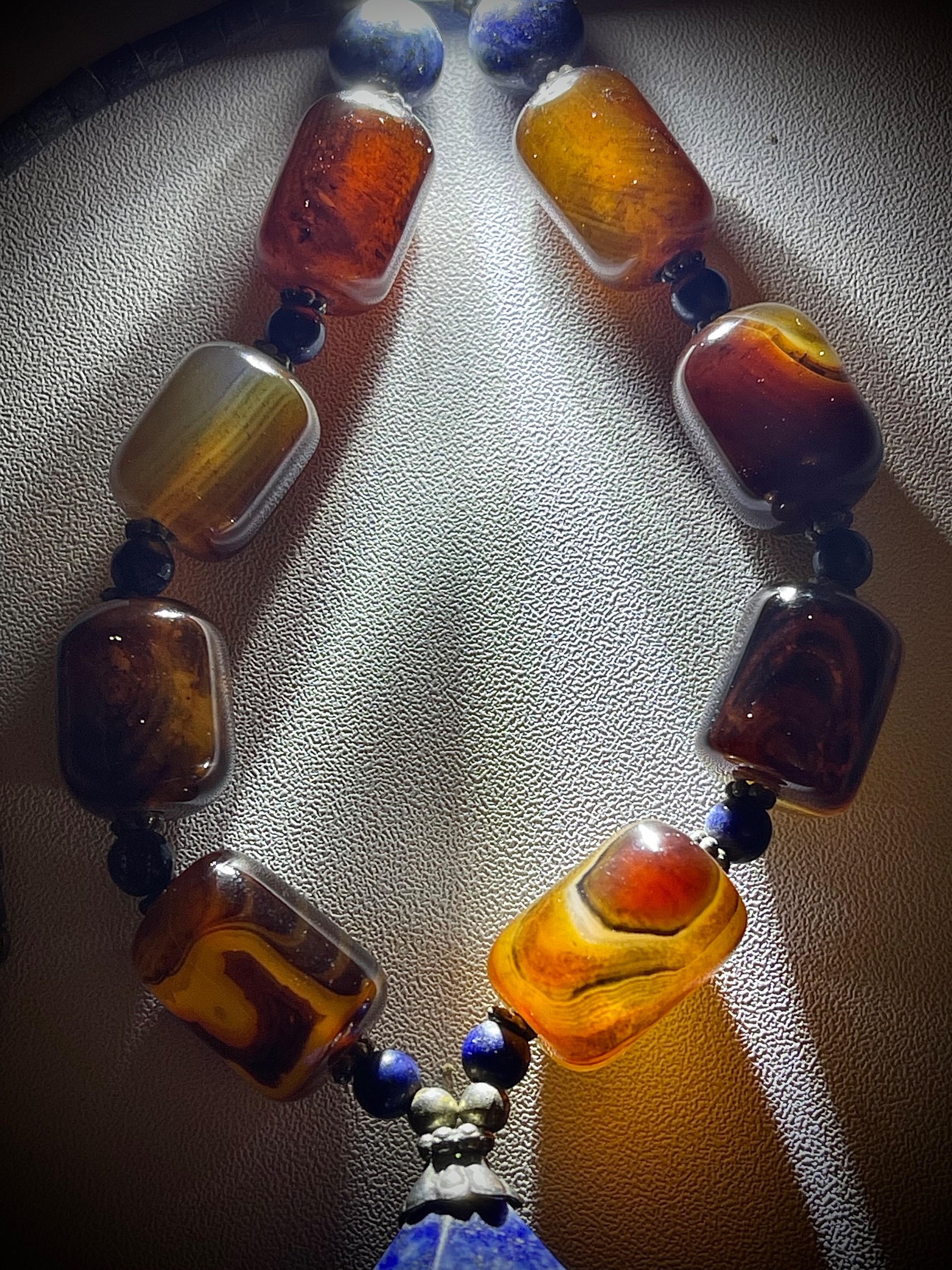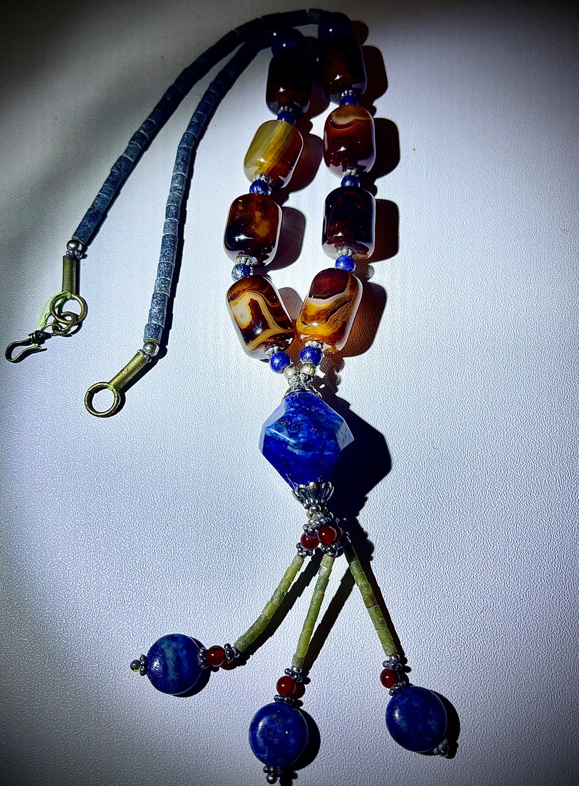 گردنبند انتیک سنگی عقیق مصور و لاجورد کلکسیونی