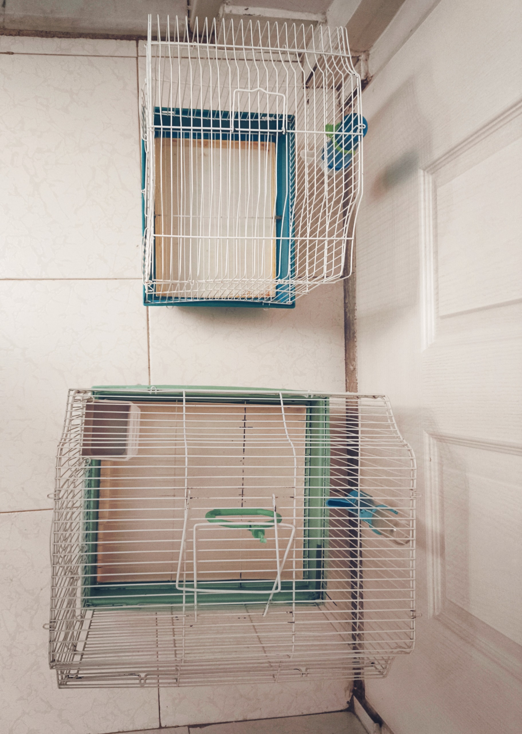 قفس آبی: طول 32 سانتی متر عرض 26 سانتی متر ارتاع 40 سانتی متر