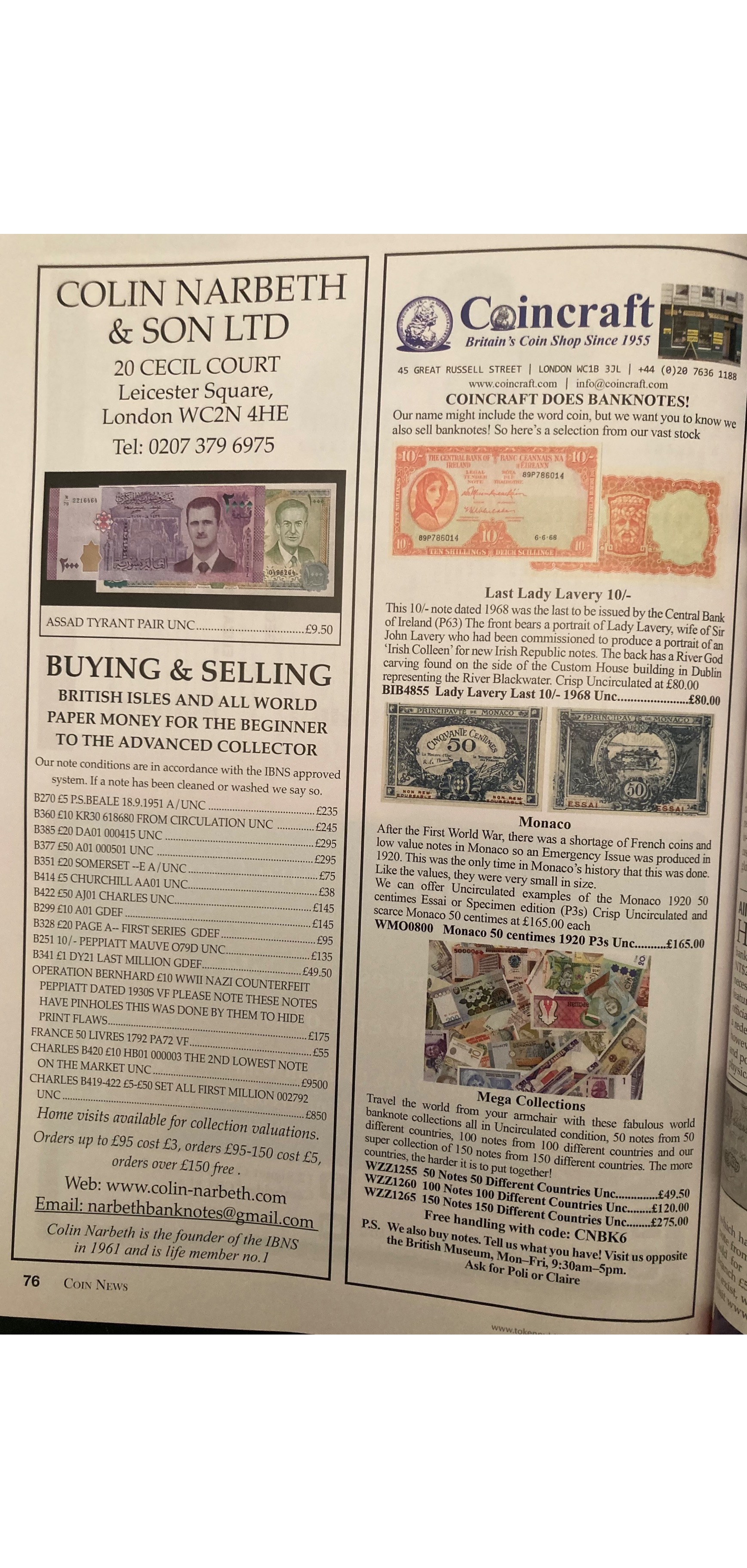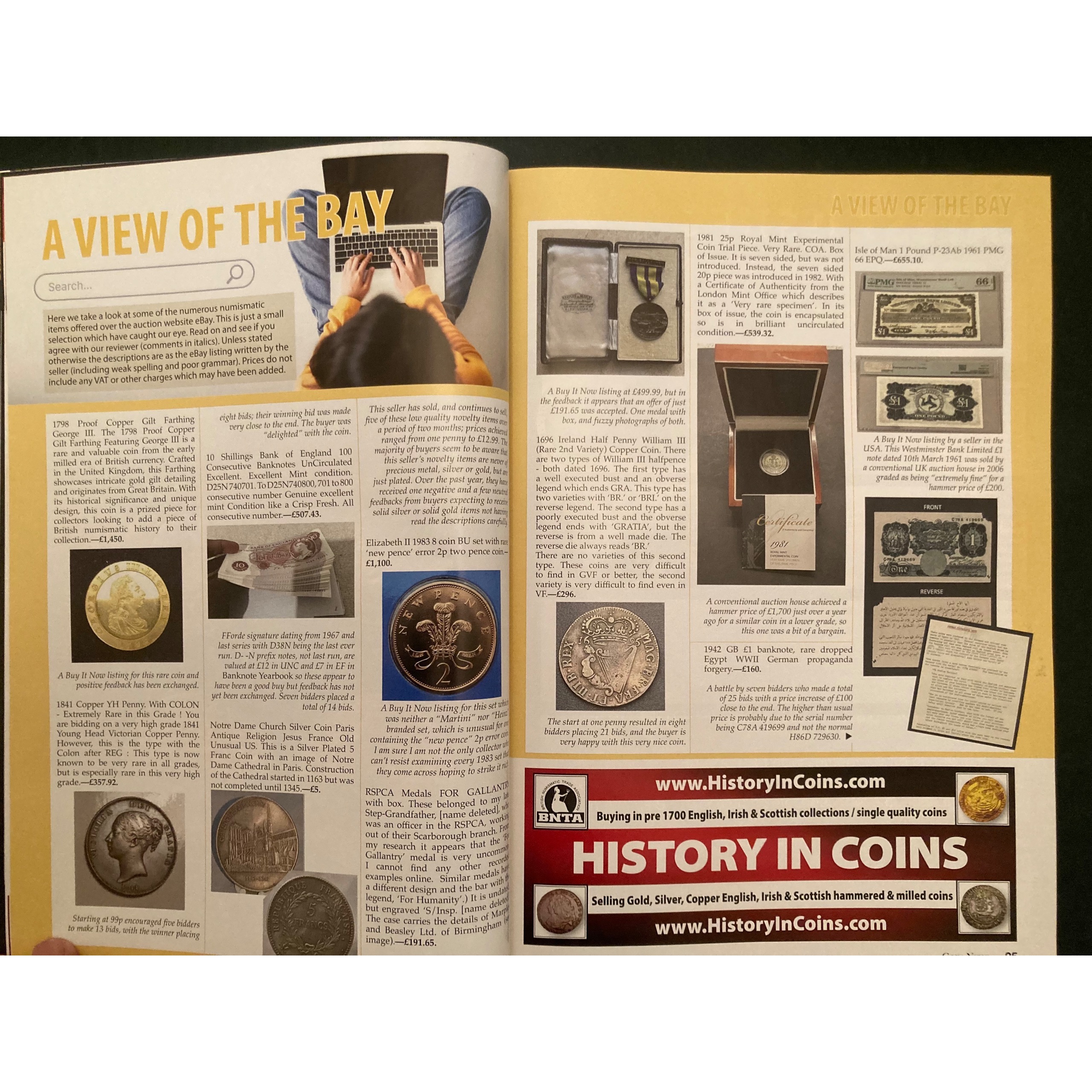 -معتبرترین مجله این زمینه، صد صفحه شامل مطالب جالب و اموزنده درباره دنیای سکه و اسکناس کلکسیونری، آخرین اخبار حراجی ها معتبر دنیا و آگهی شرکت های معتبر خرید و فروش می باشند
