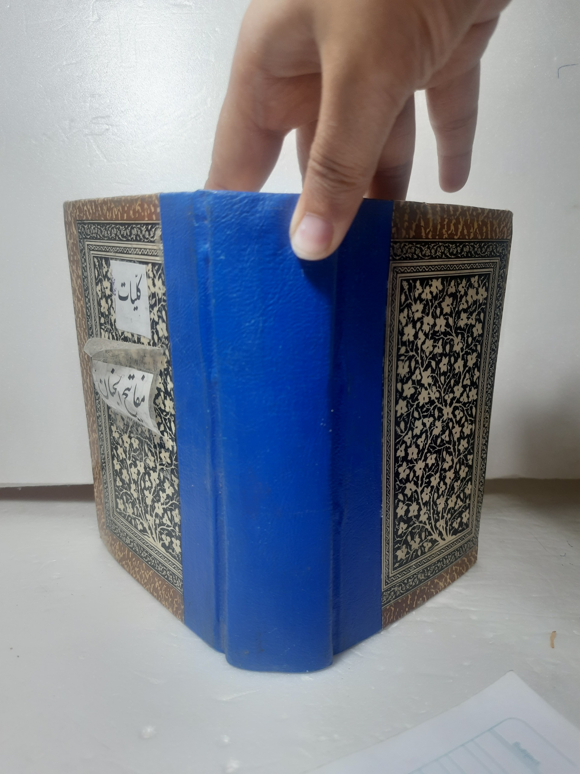 کد 1945 کلیات مفاتیح الجنان همراه با شجره نامه ابتدای کار نویسنده احمد نجفی زنجانی به خط مرعشی سایز ربعی حدود 330 صفحه با حاشیه نویسی جلد کالینگر سخت صفحات ابتدایی مطابق تصاویر دارای ترمیم میباشد سایر صفحات دارای لکههای جزئی سال 1327 طبق مقدمه