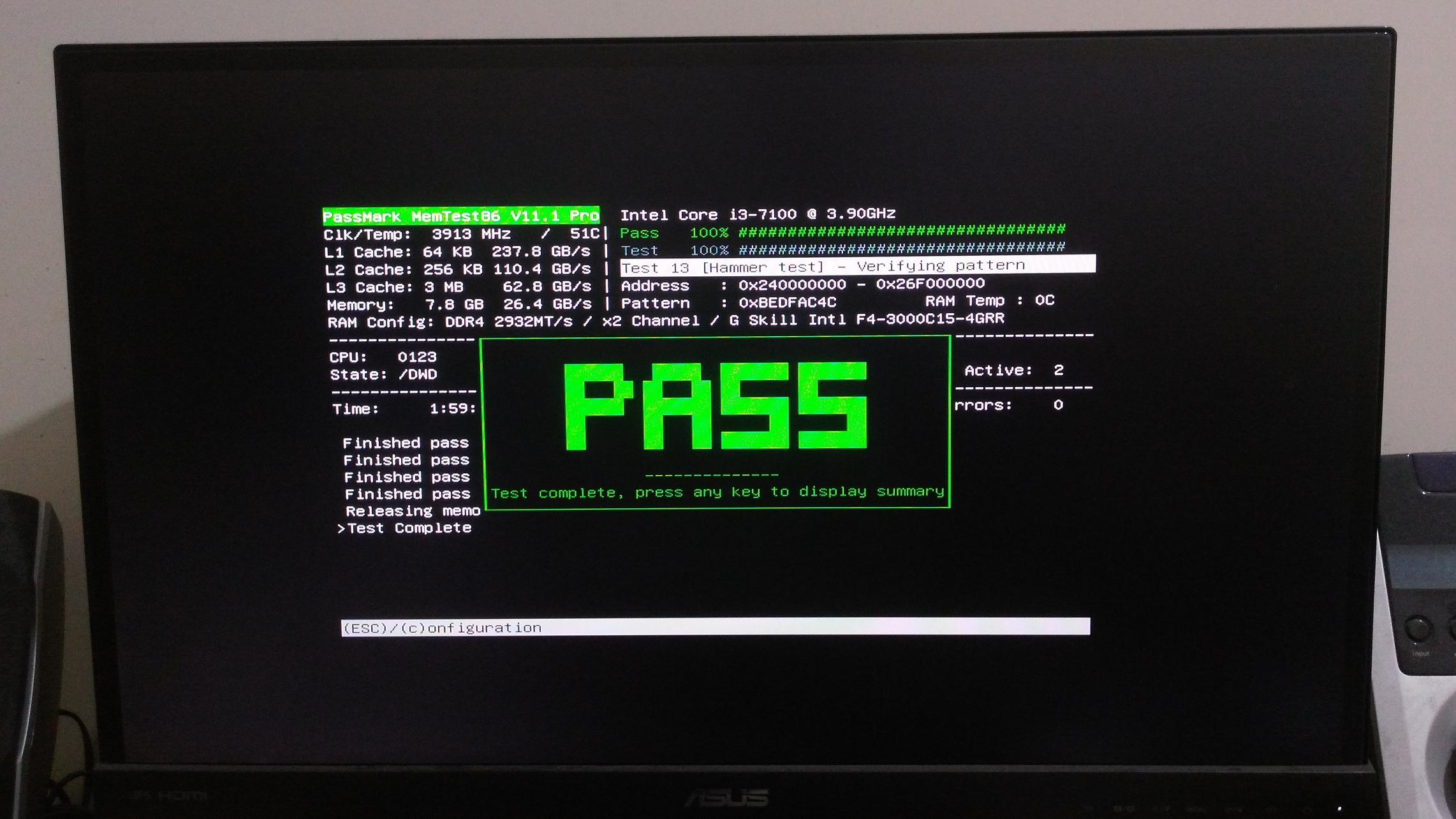 کاملا سالم ، تصویر تست سلامت با نرم افزار MEMTEST قرار داده شده.
