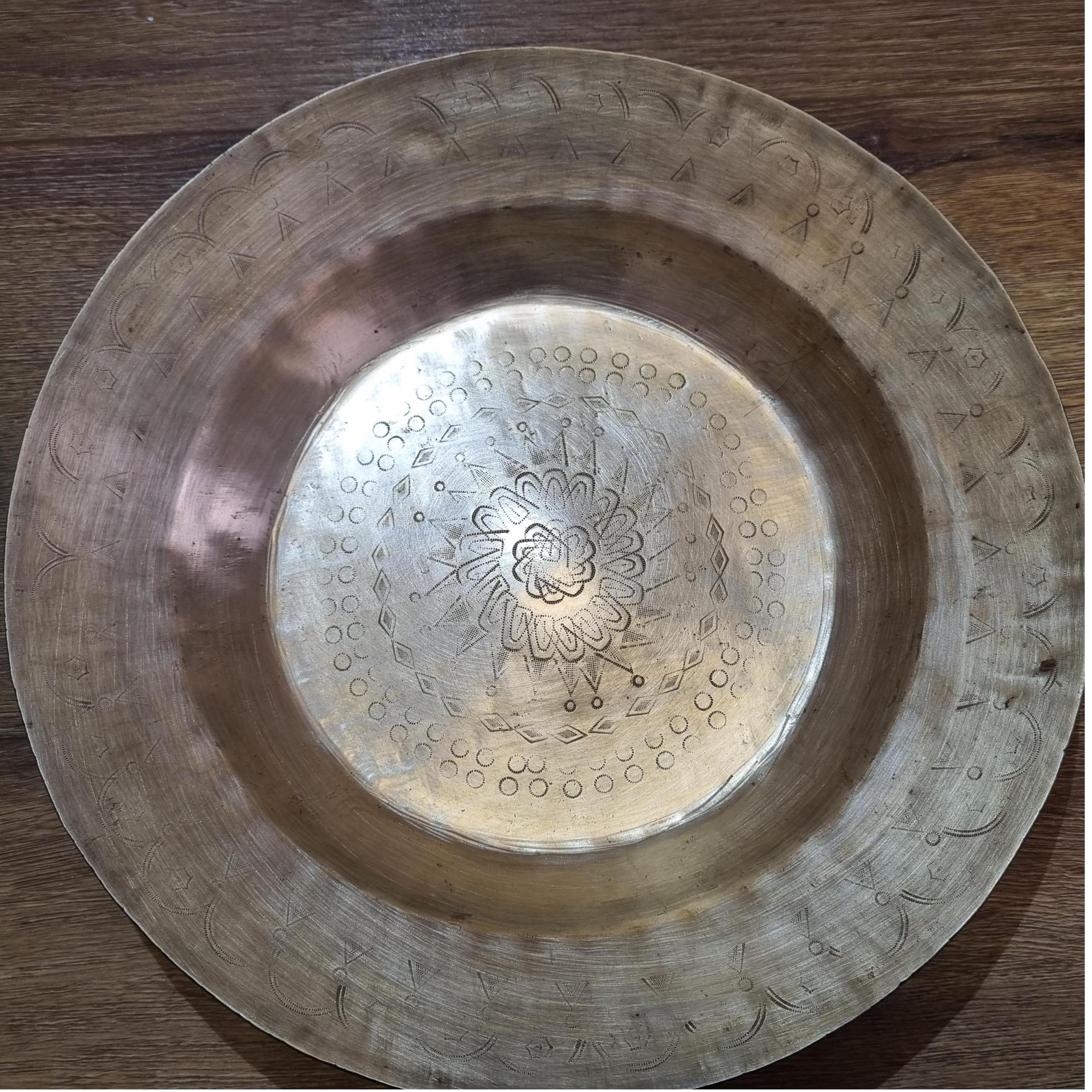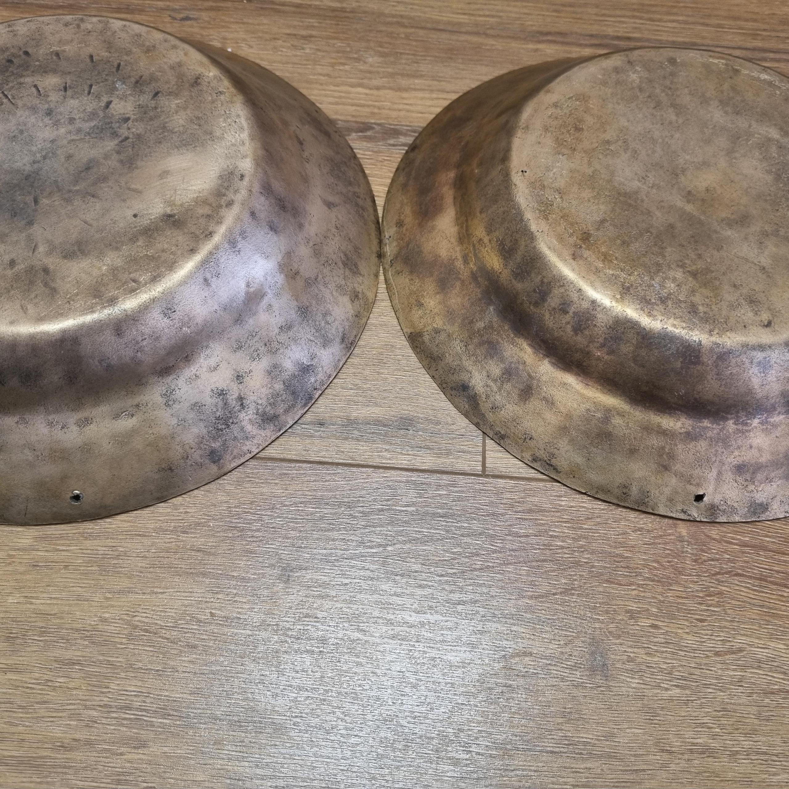 2عدد تشت برنجی چکشی کهنه نقش دار