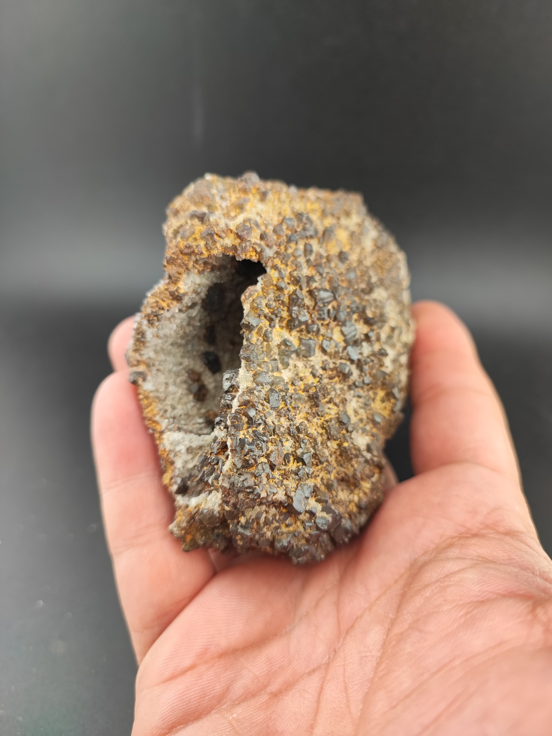 بخش بیرونی کلاستر پر بلور کانی گوتیت (یکی از کانی های کمیاب آهن دار ایران)