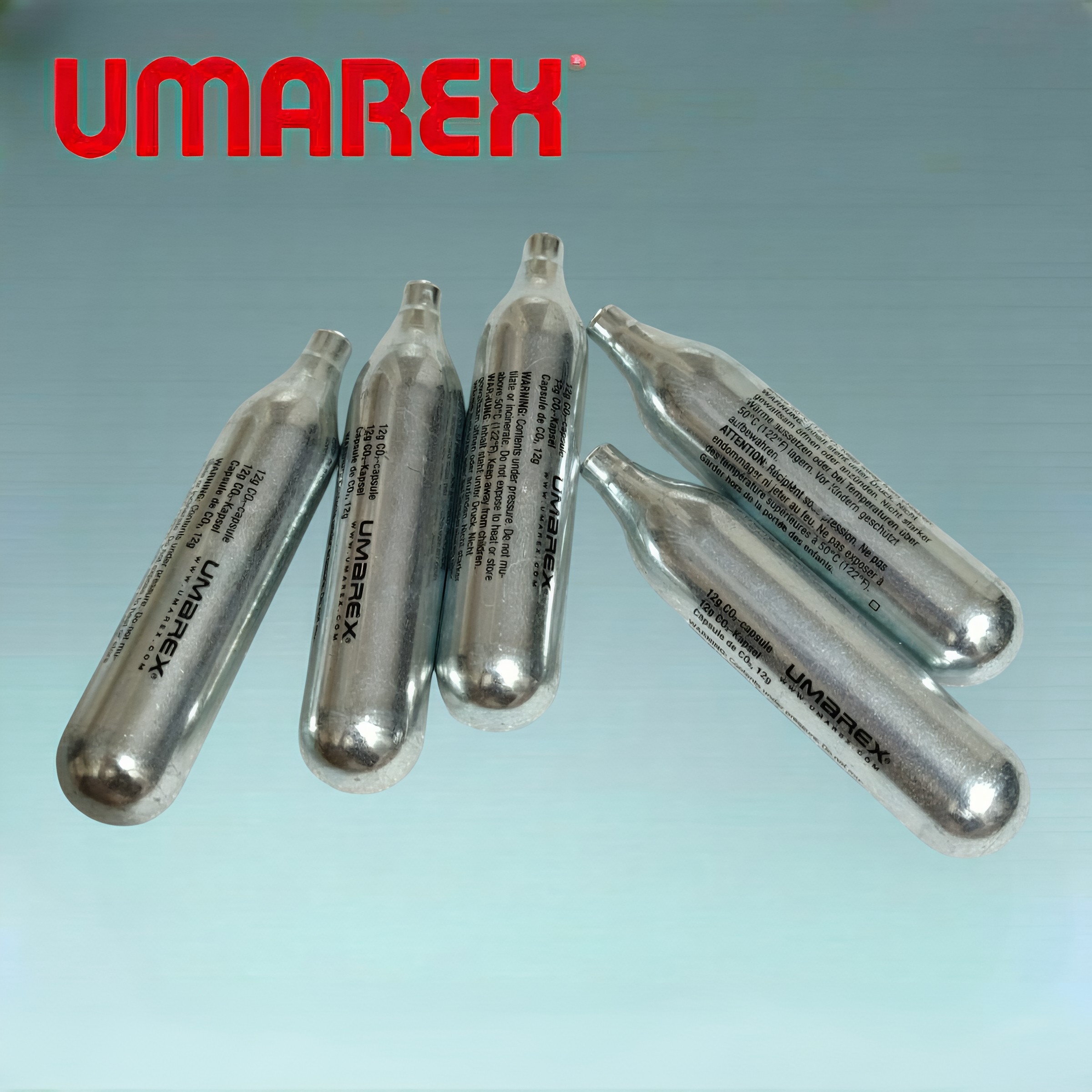 کپسول گاز 12 گرمی دی اکسید کربن برند اومارکس، مناسب جهت انواع تپانچه های ورزشی و تفریحی، تفنگ ها و سایر لوازم بقا و شکار که با کپسول های استاندارد 12 گرمی تغذیه می شوند.