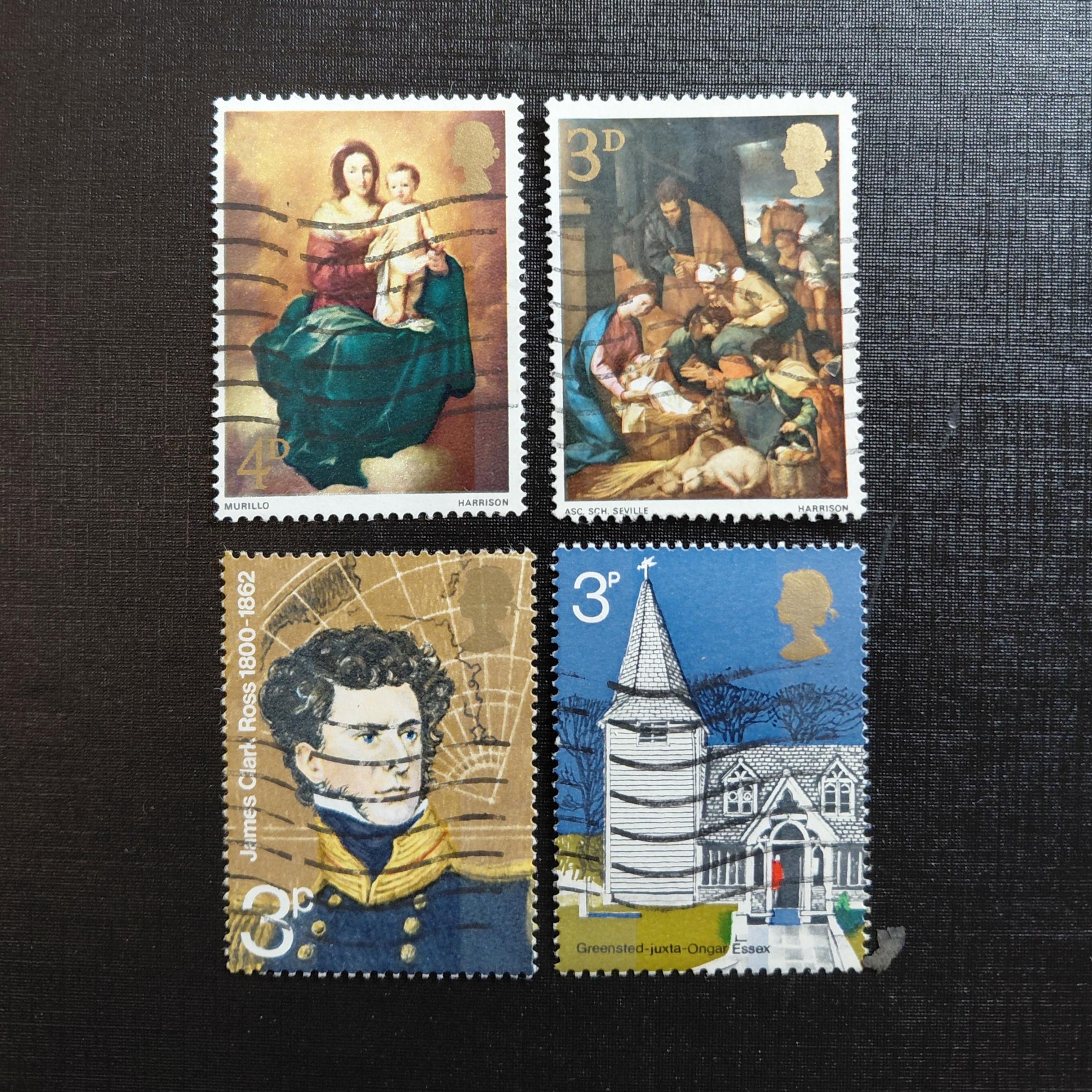 چهار عدد تمبر زیبای بریتانیا، مهردار، قدیمی، دوره پهلوی، عین تصویر تقدیم می شود.