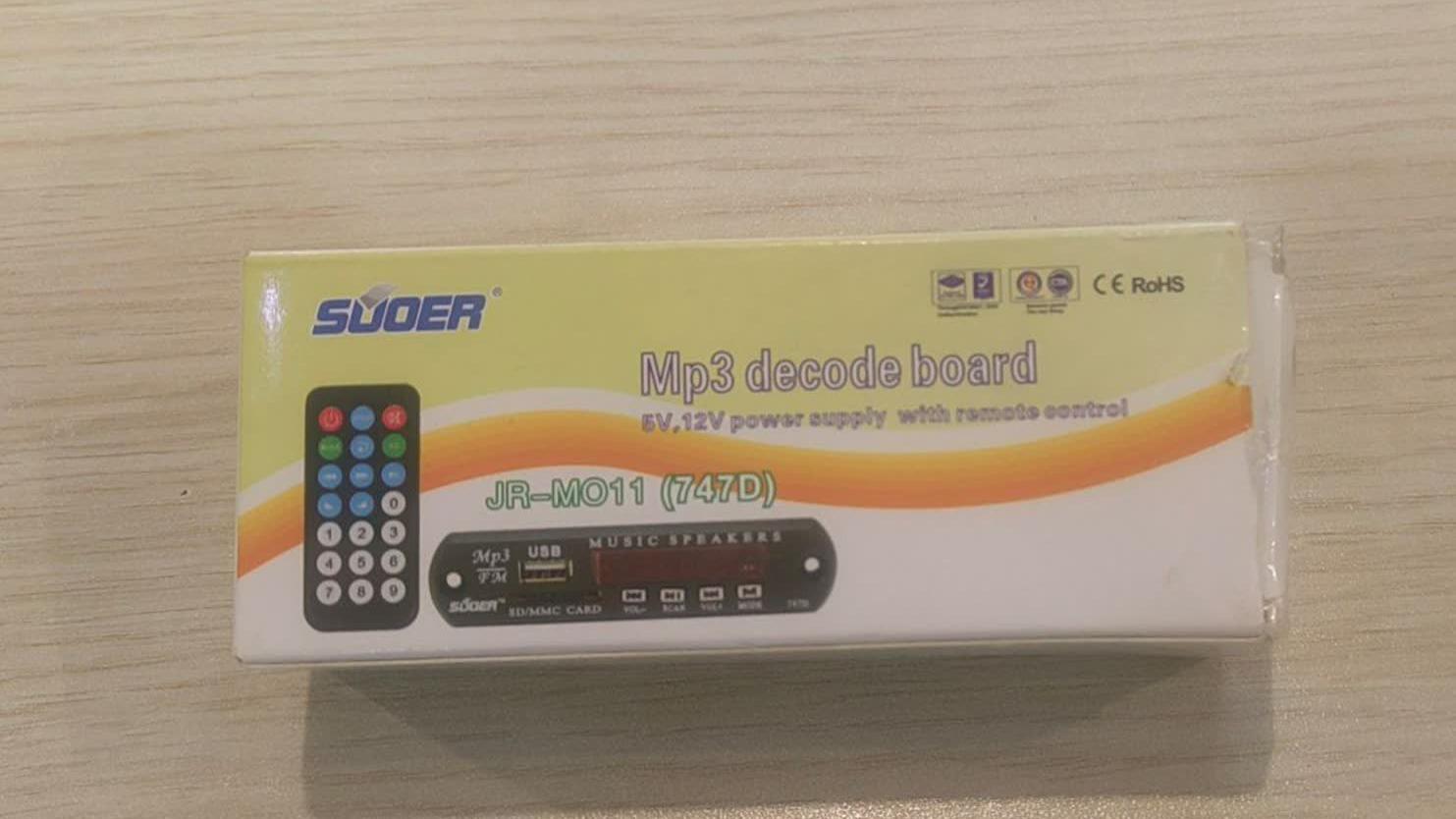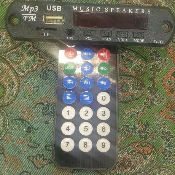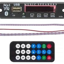 برد فلش خور یا ماژول MP3 پلیر بلوتوث دار مدل بهینه شده ( دارای دیود جهت محافظت در برابر اتصال معکوس قطب + و )، ولتاژ ورودی 5V DC تا 12V DC، دارای خروجی صدای استریو به صورت 3 سیم کانال چپ، کانال راست و وسط مشترک، دارای ریموت کنترل از راه دور، ورودی مادگی AUX، پورت مادگی USB، رادیو FM، گیرنده بلوتوث صدا از موبایل، تبلت، لپ تاپ، کارت حافظه TF توسط این برد میتوان انواع پخش ، اسپیکر ، آمپلی فایر ، ضبط خودرو و... را مجهز به بلوتوث و usb کرد ولتاژ ورودی ماژول 5V DC تا 12V DC است. این برق میتواند از طریق باتری، آداپتور 5 ولت 1 آمپر یا برق خودرو تامین شود. نکات نصب: در صورت نیاز به استفاده بر روی ضبط ماشین بهتر است که یک ماژول کاهنده ولتاژ DC نیز خریداری شود و ولتاژ خروجی کاهش یافته روی 9V تنظیم شود و سپس به ماژول MP3 بلوتوثی داده شود تا برد فلش خور از نوسان برق خودرو آسیبی نبیند. اگر ضبط، اسپیکر و سینمای خانگی و به صورت کلی سیستم صوتی شما دارای ورودی AUX صدا به صورت فیش مادگی AUX روبردی یا دو فیش مادگی AV ورودی است باید سه سیم خروجی صدای برد فلش خور را به یک فیش نری AUX استریو یا دو فیش نری AV لحیم کنید و به ورودی سیستم بزنید. یا در صورت نیاز سیمها را به پایههای این فیشها لحیم کنید. اگر ضبط یا اسپیکر یا پخش ماشین شما دارای ورودی AUX صدا نیست باید سیمهای خروجی صدا توسط متخصص الکترونیک و صوتی و تصویری به پایههای ورودی صدای IC ضبط یا پایههای ولوم صدا ( در صورت امکان ) لحیم شود. این مدل از بردهای فلش خور دارای گیرندهی صدا از طریق ارتباط بولتوثی بیسیم هستند و نیازی به دانگل بلوتوث نخواهند داشت.