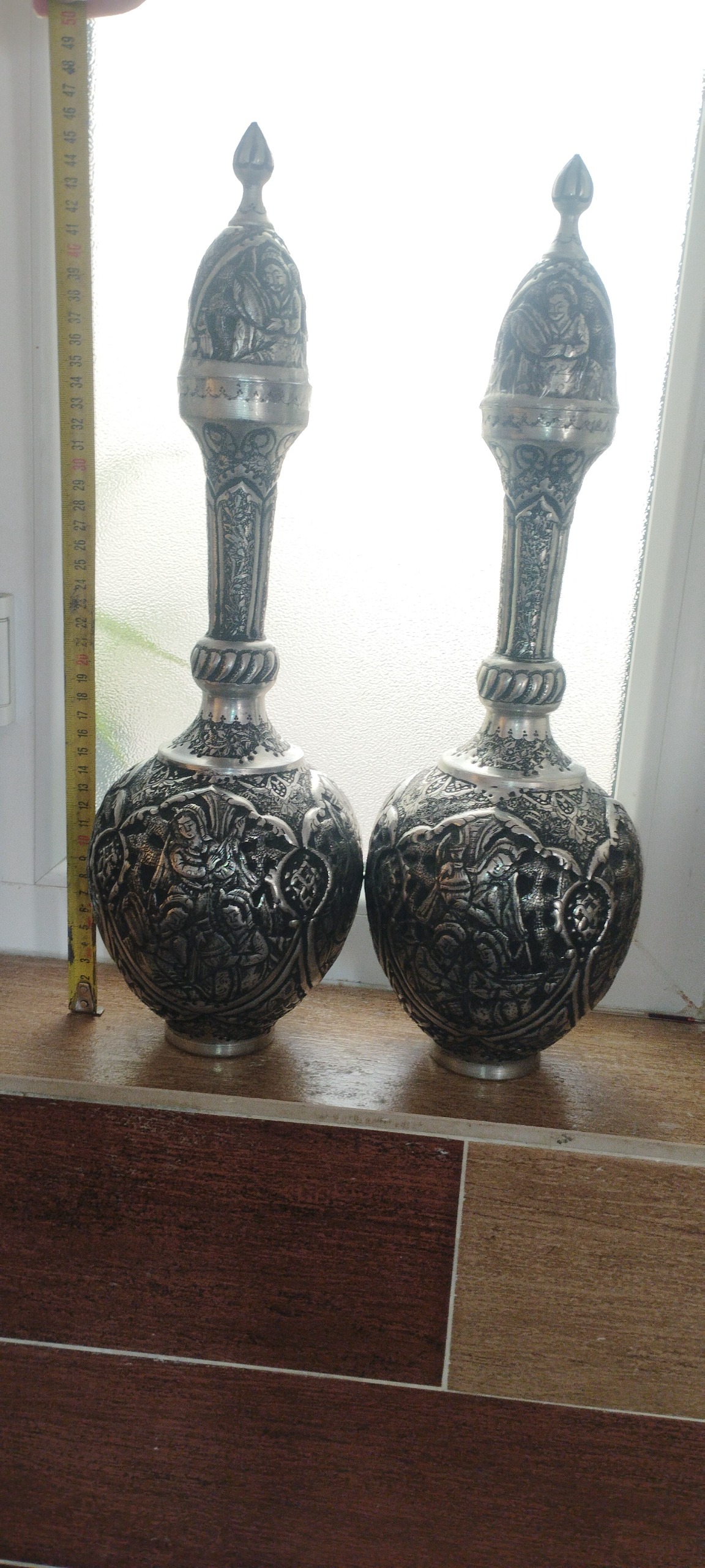 تنگ مسی قلمزنی قدیمی وزن 2 ک ارتفاع 46 س بدون ضربه و فرو رفتگی